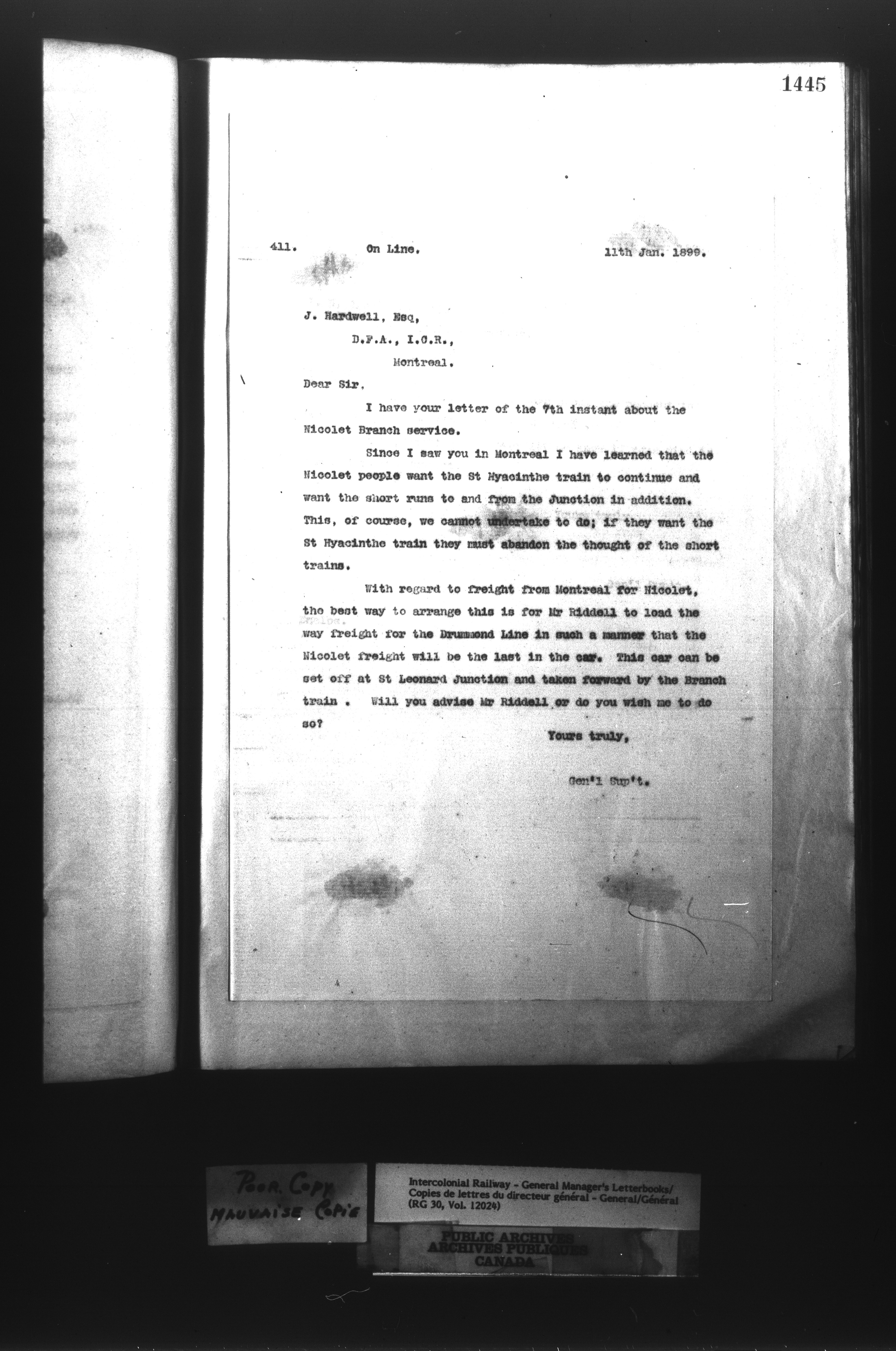 Canadian Government Railways : Office of the General Manager, Outward correspondence - 11400