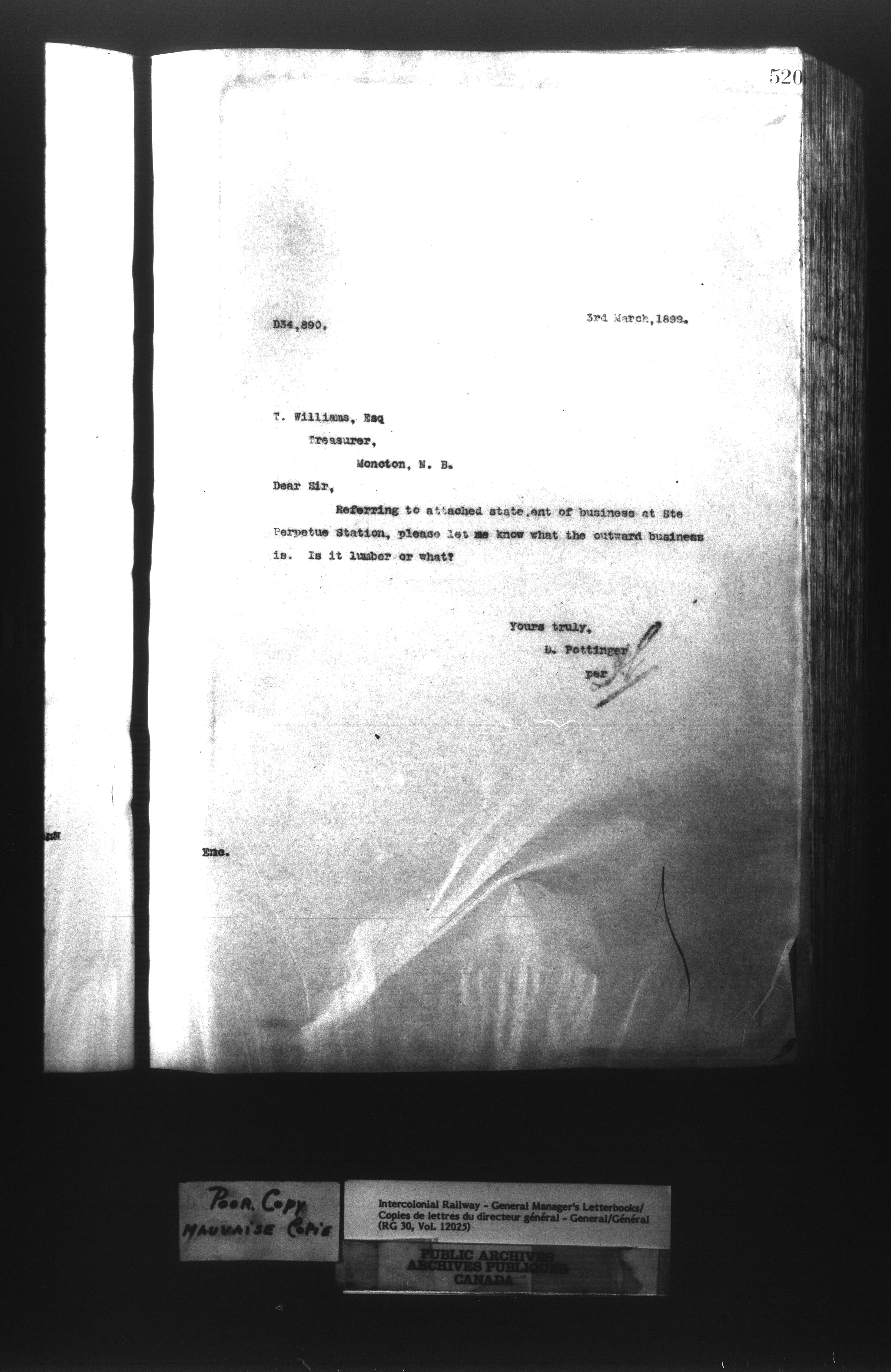 Canadian Government Railways : Office of the General Manager, Outward correspondence - 11400