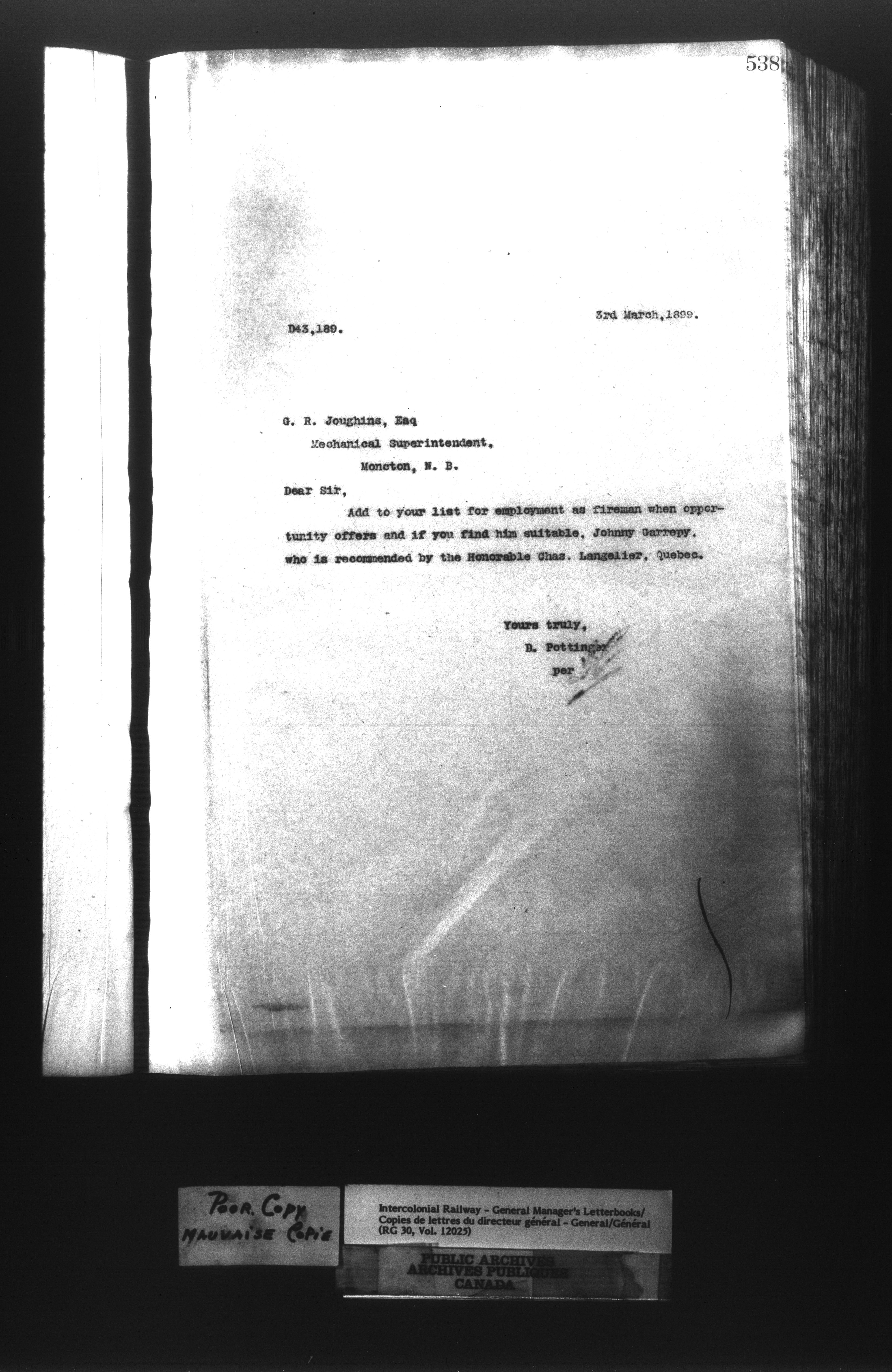 Canadian Government Railways : Office of the General Manager, Outward correspondence - 11400