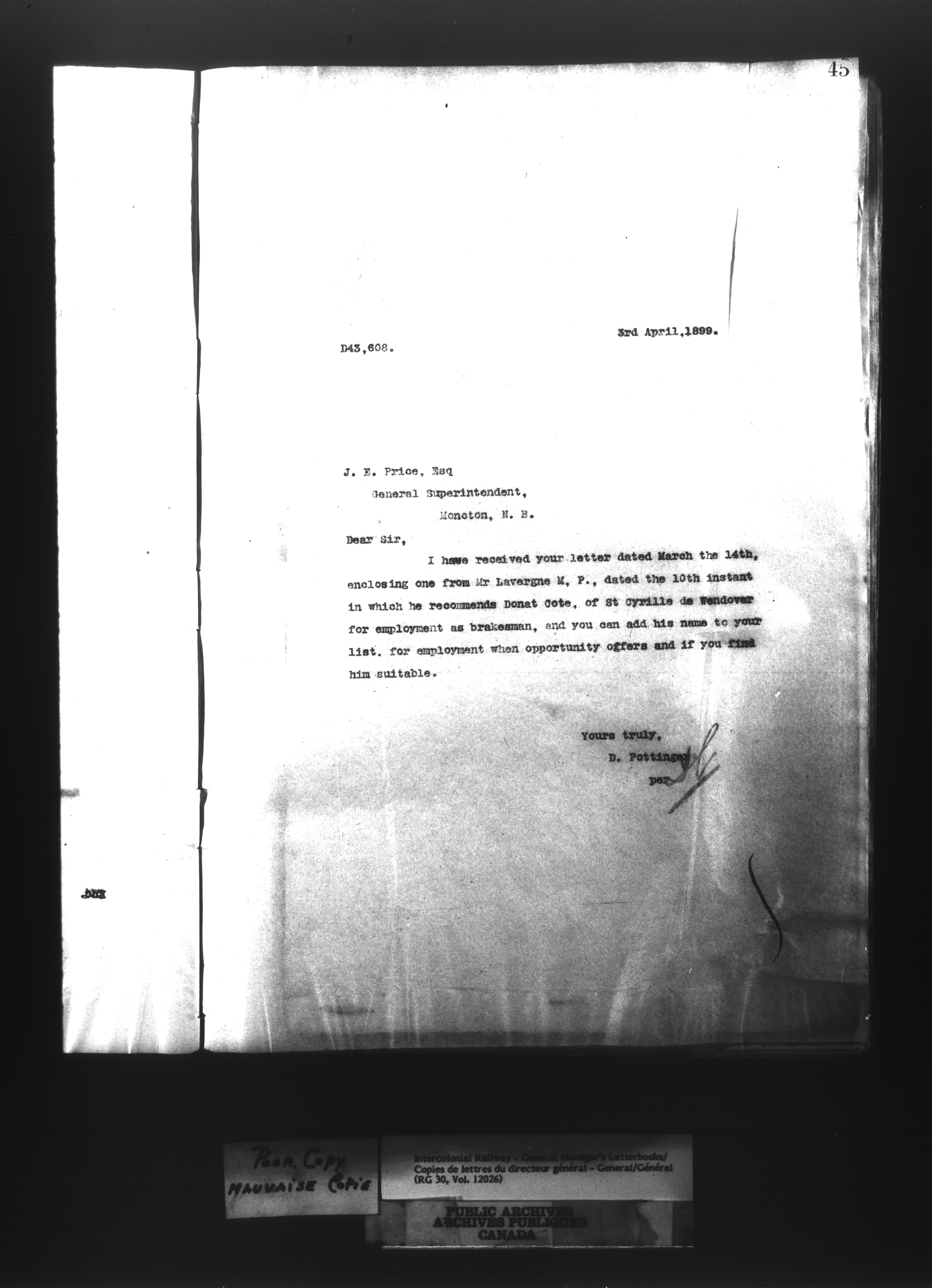 Canadian Government Railways : Office of the General Manager, Outward correspondence - 11401