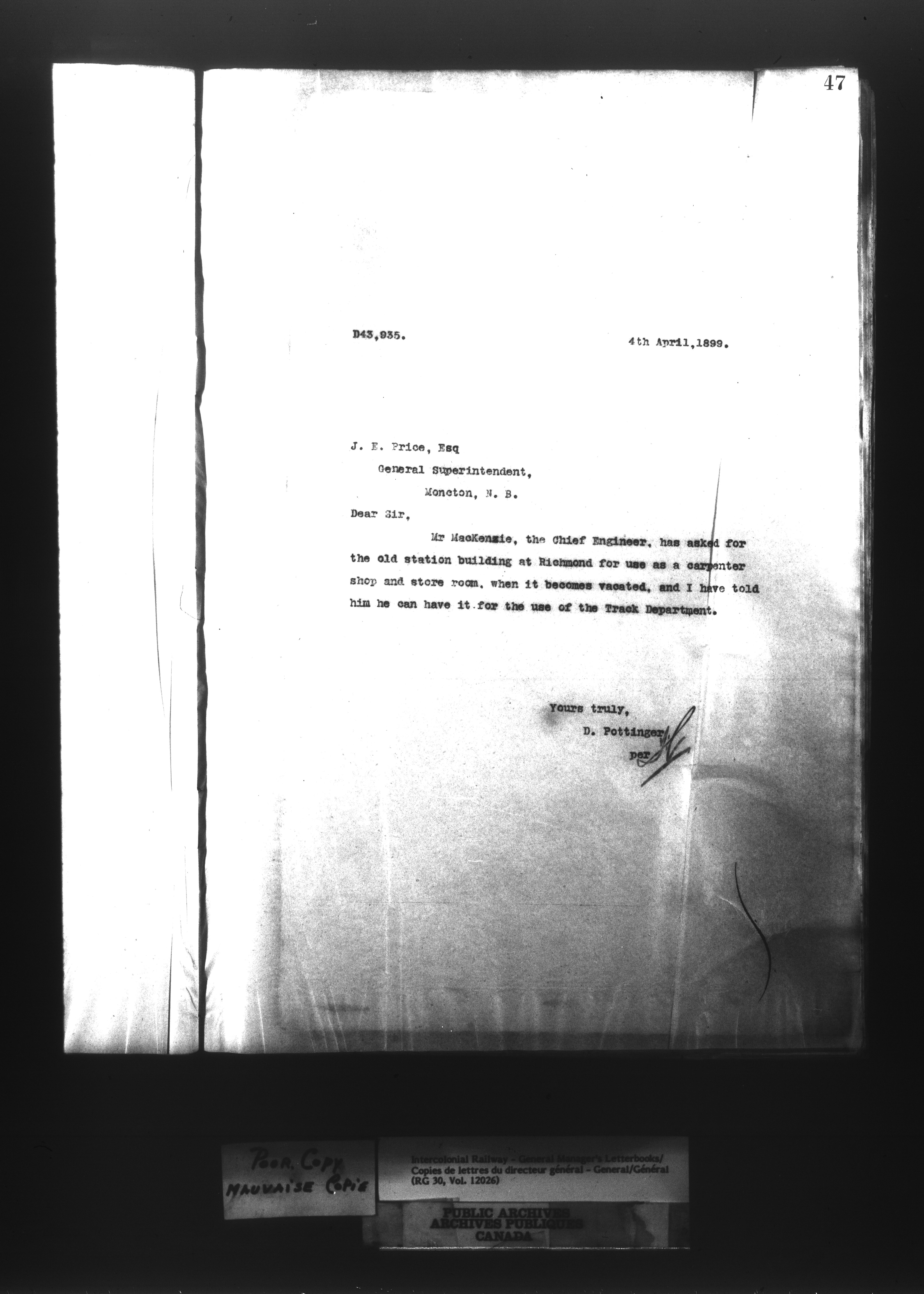 Canadian Government Railways : Office of the General Manager, Outward correspondence - 11401