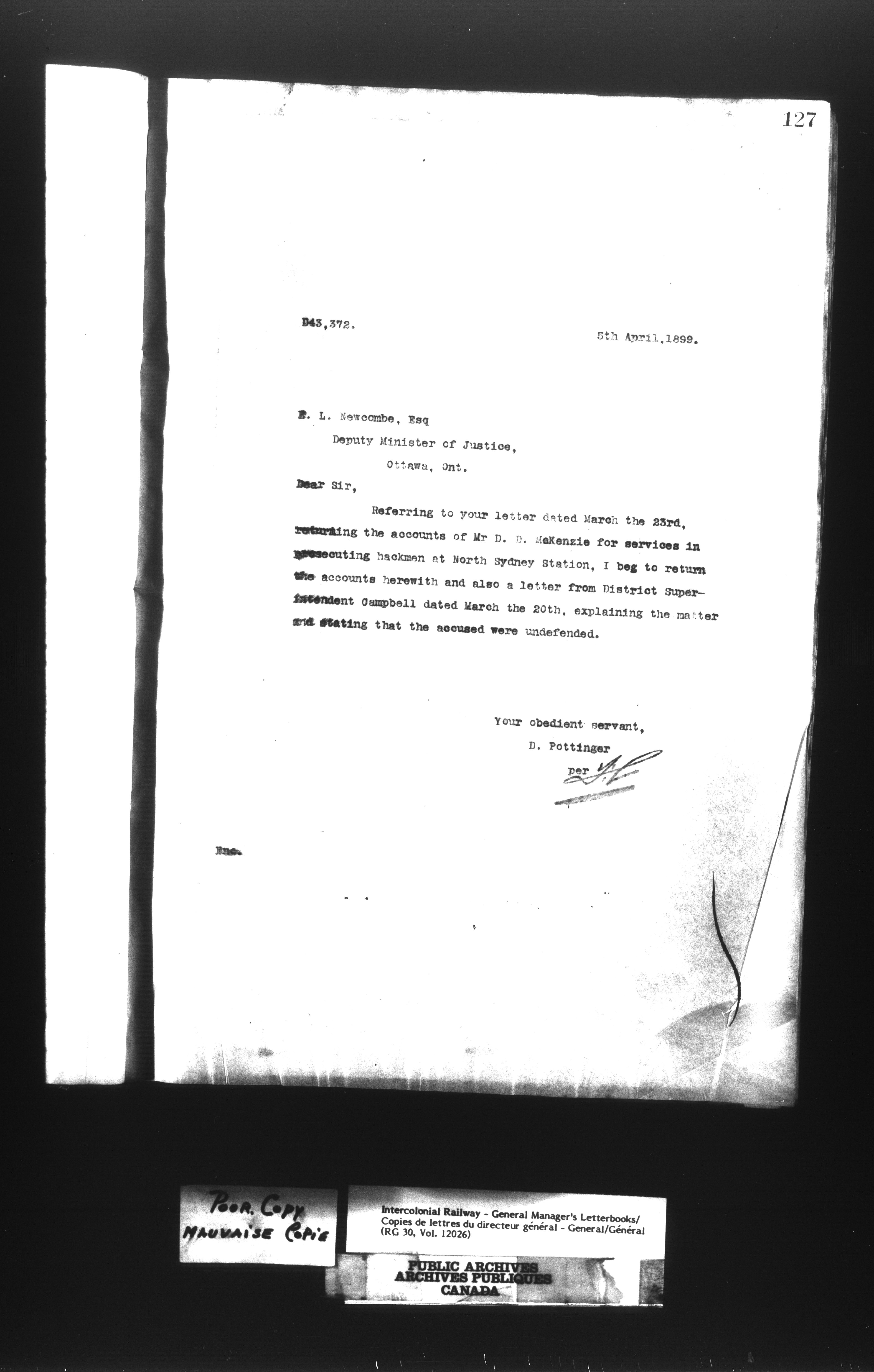 Canadian Government Railways : Office of the General Manager, Outward correspondence - 11402