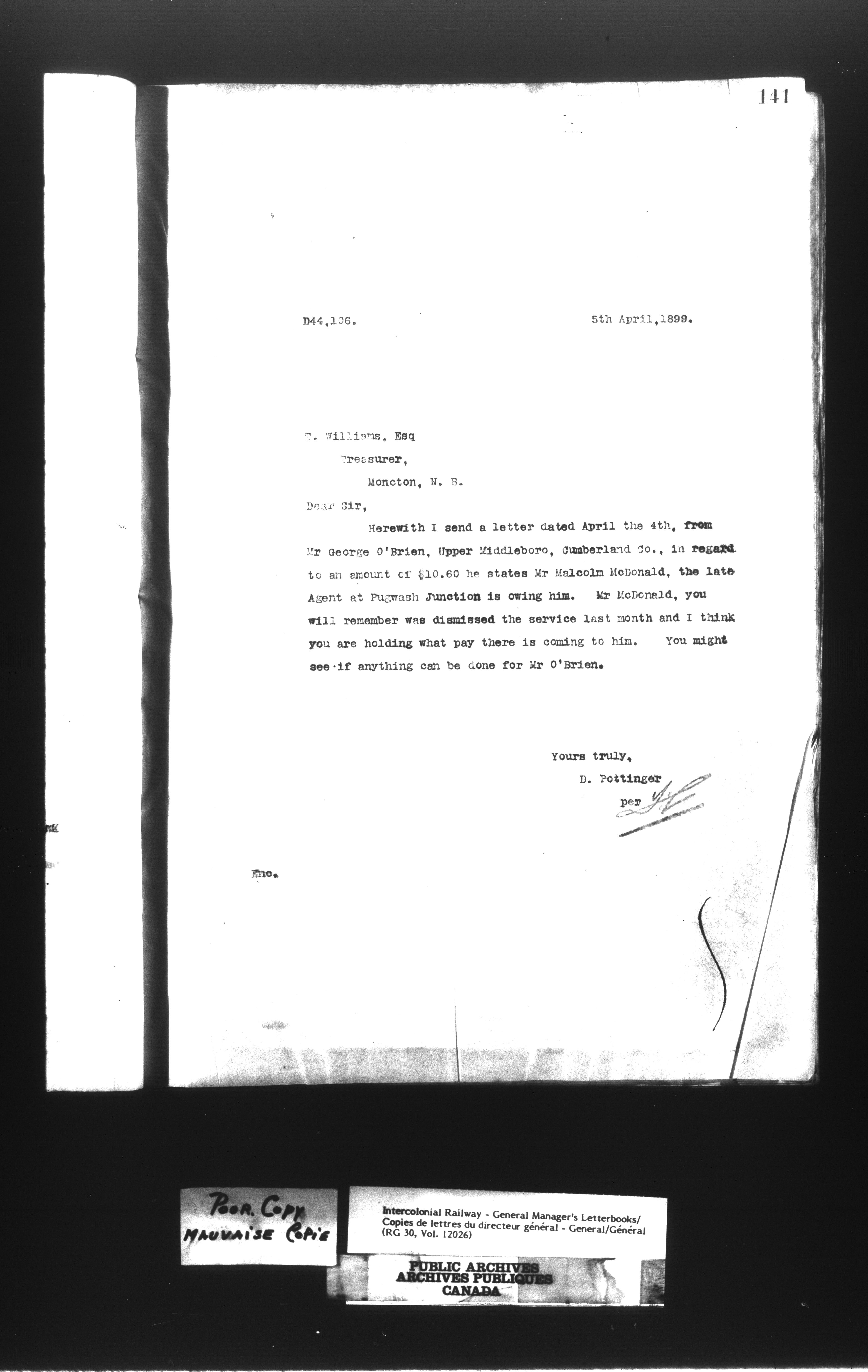 Canadian Government Railways : Office of the General Manager, Outward correspondence - 11402