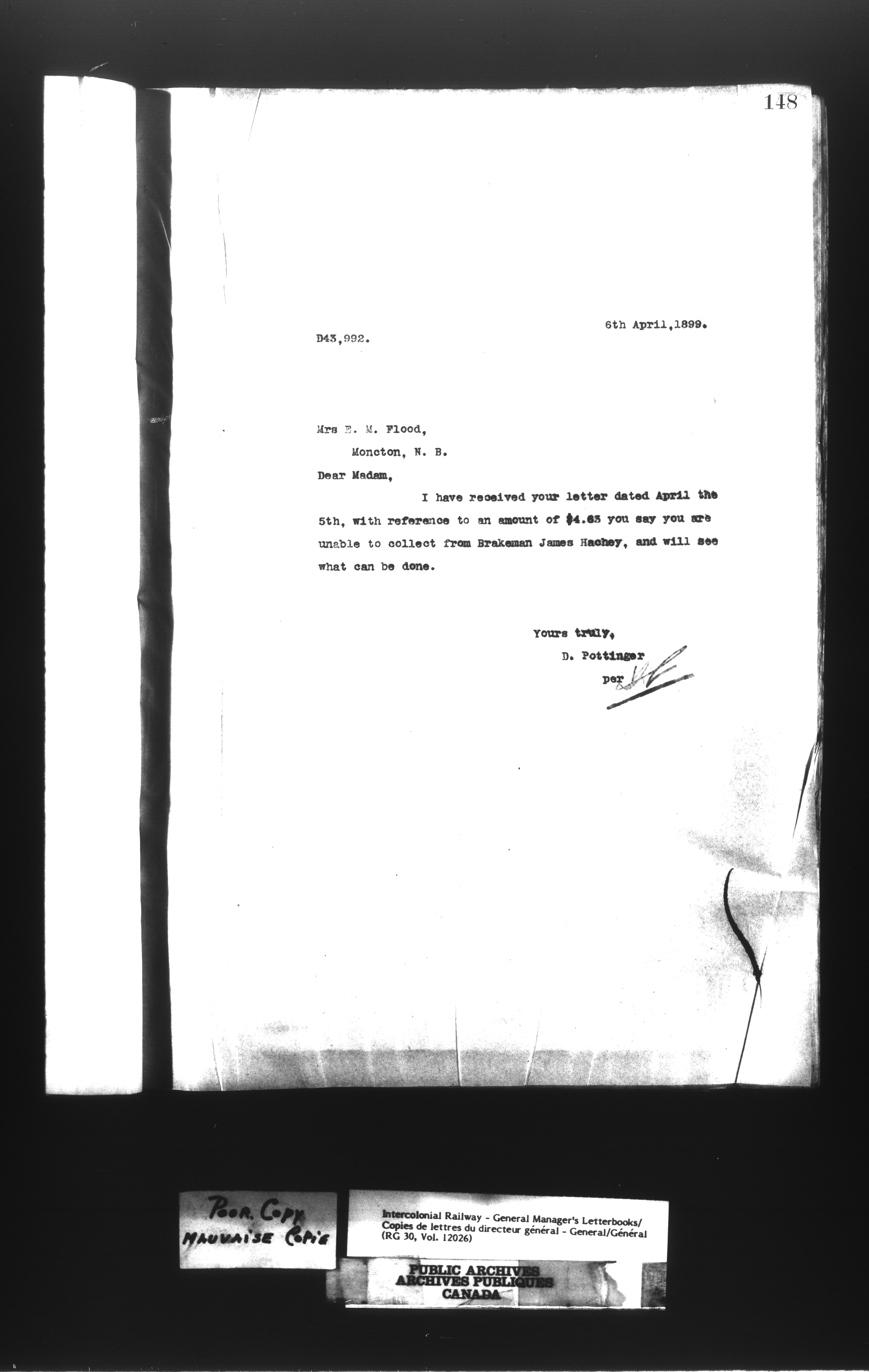 Canadian Government Railways : Office of the General Manager, Outward correspondence - 11402