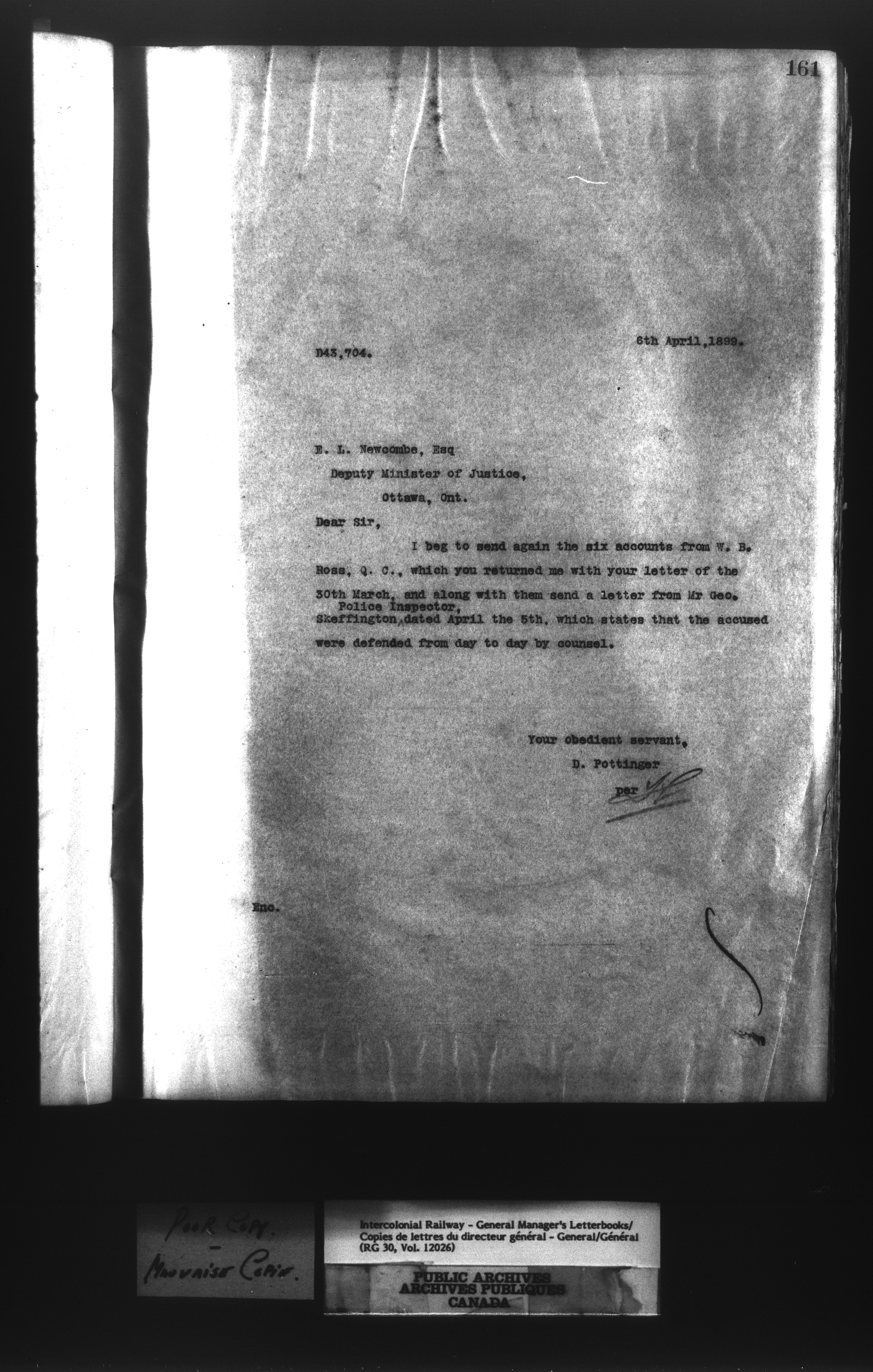 Canadian Government Railways : Office of the General Manager, Outward correspondence - 11403