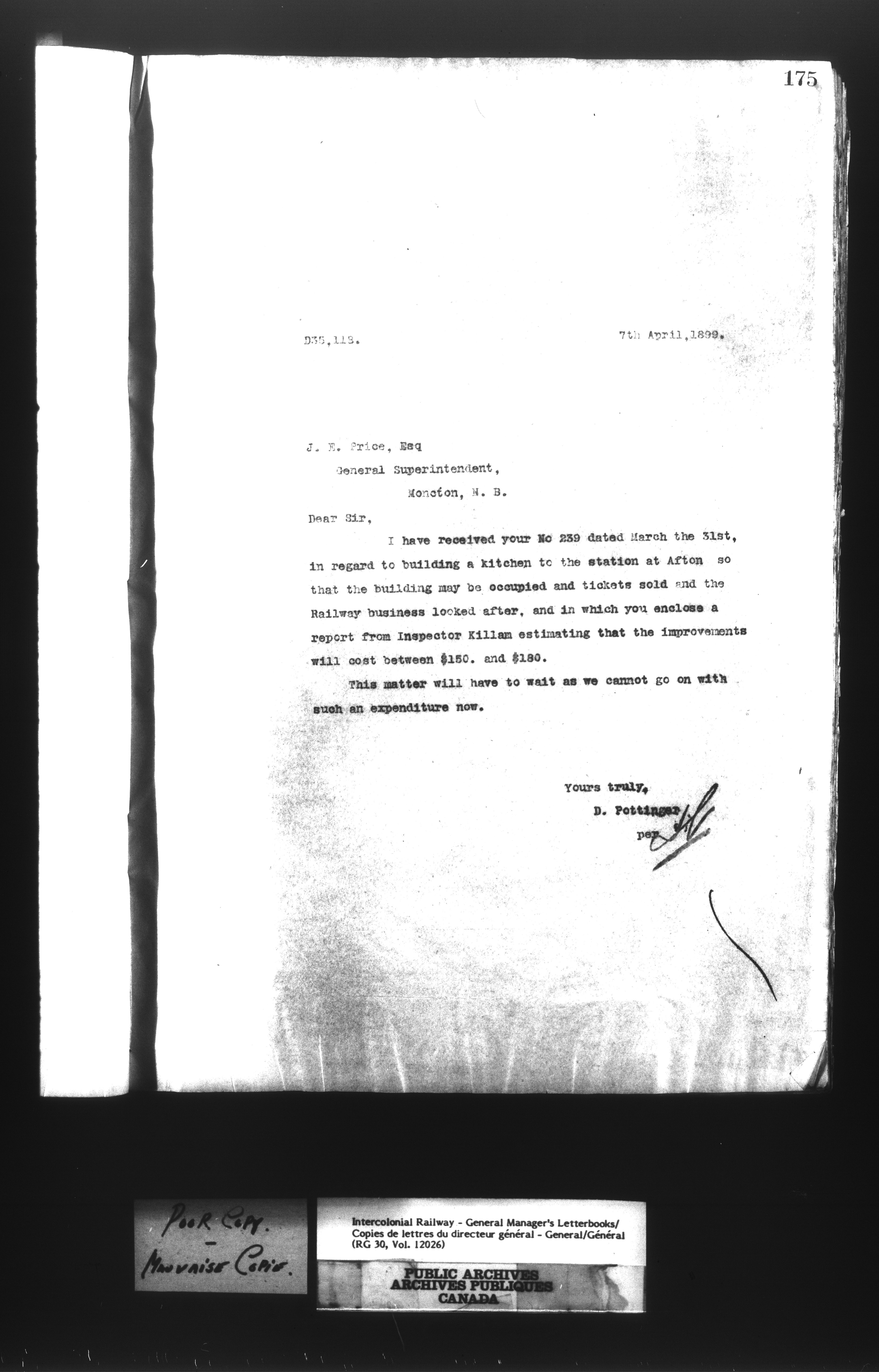 Canadian Government Railways : Office of the General Manager, Outward correspondence - 11403