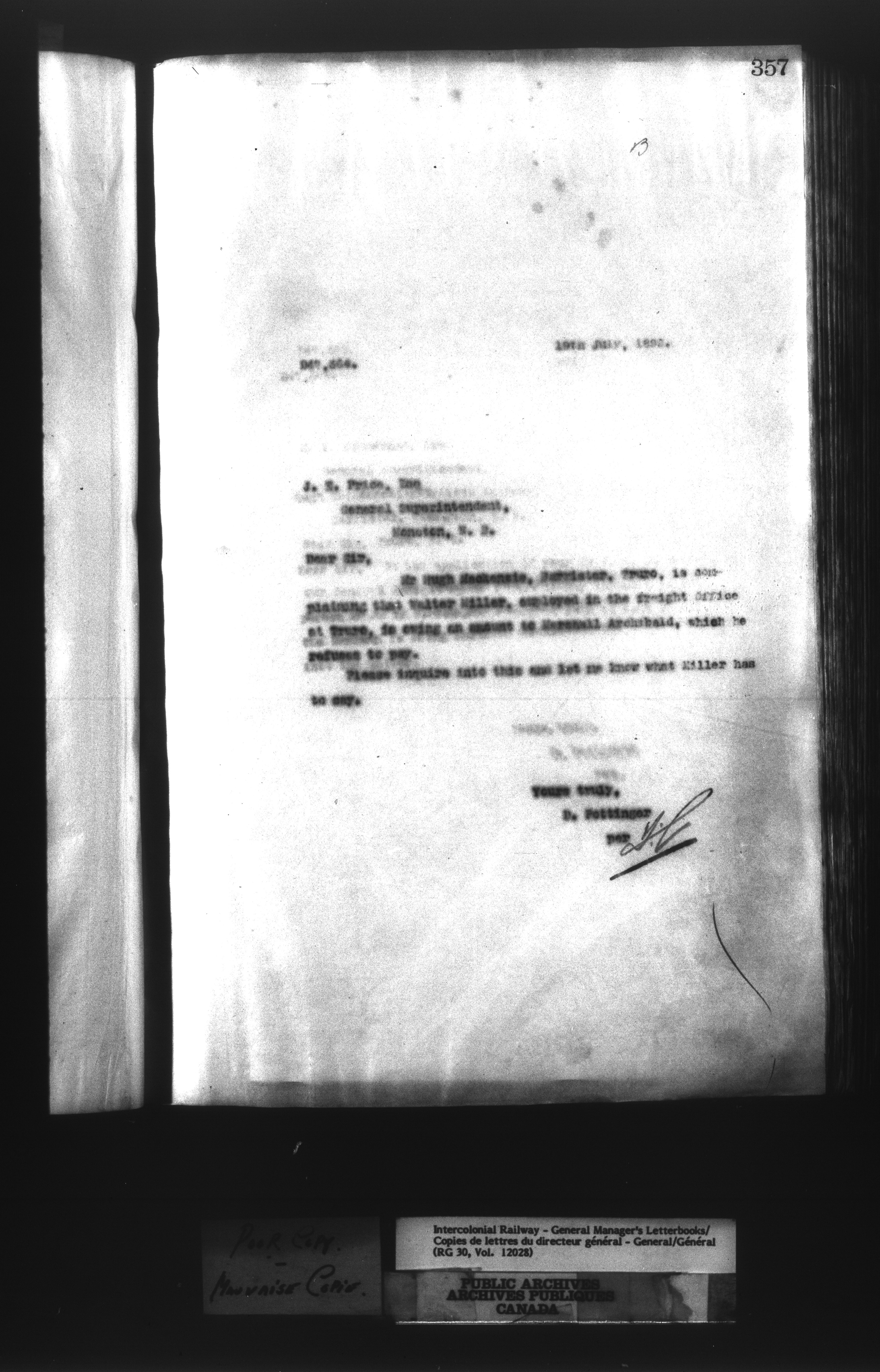 Canadian Government Railways : Office of the General Manager, Outward correspondence - 11406