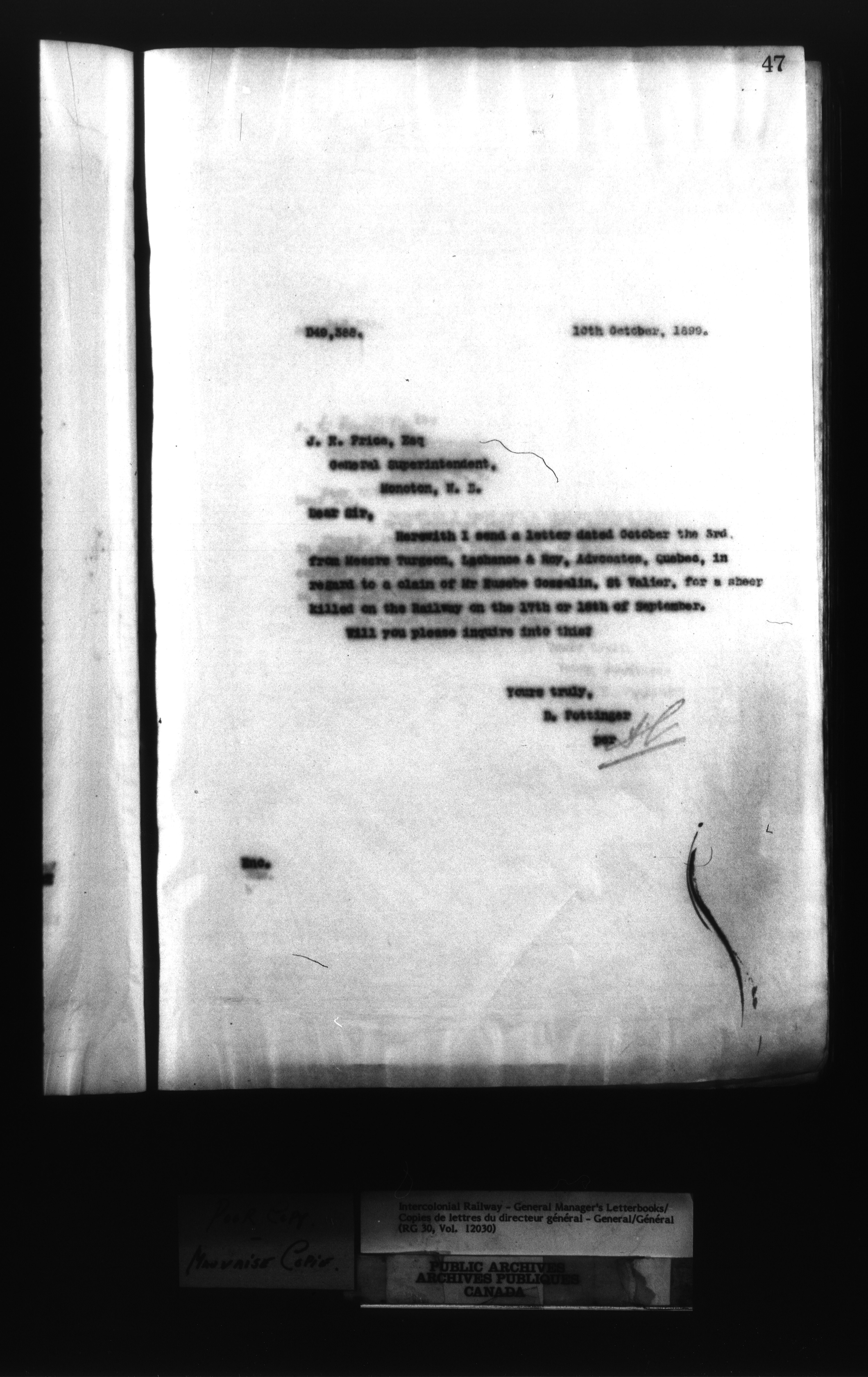Canadian Government Railways : Office of the General Manager, Outward correspondence - 11409