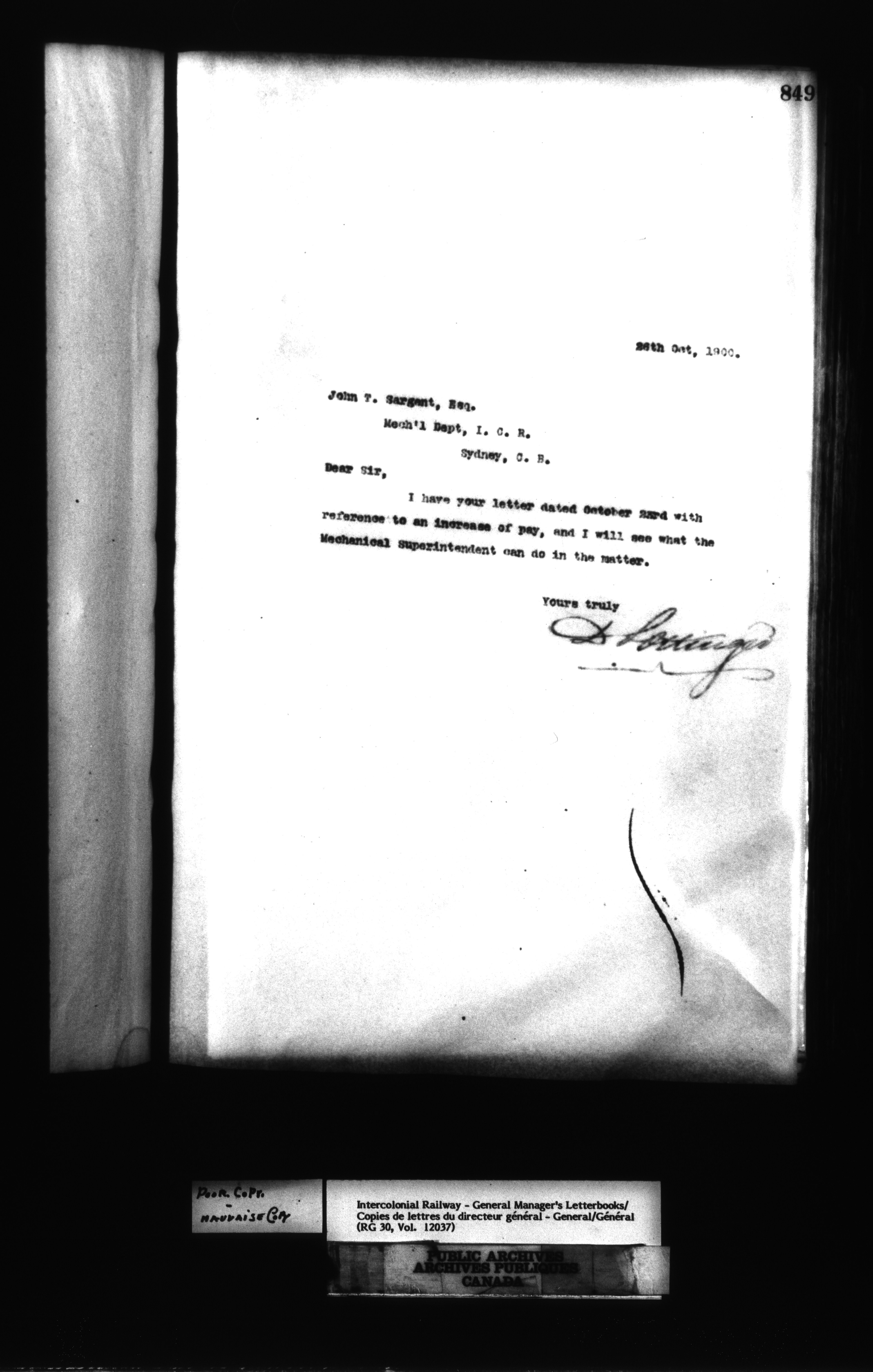 Canadian Government Railways : Office of the General Manager, Outward correspondence - 11419