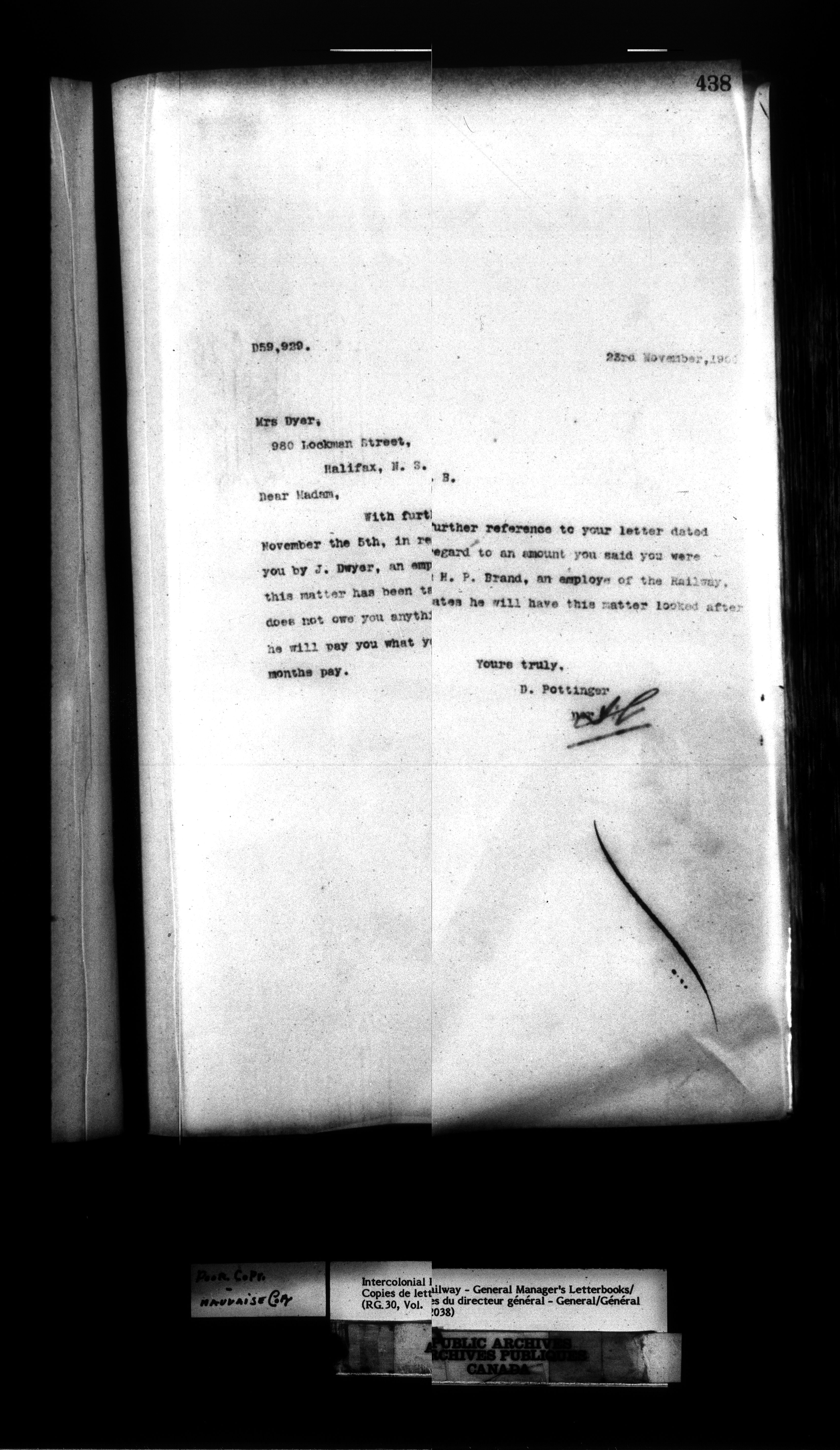 Canadian Government Railways : Office of the General Manager, Outward correspondence - 11420