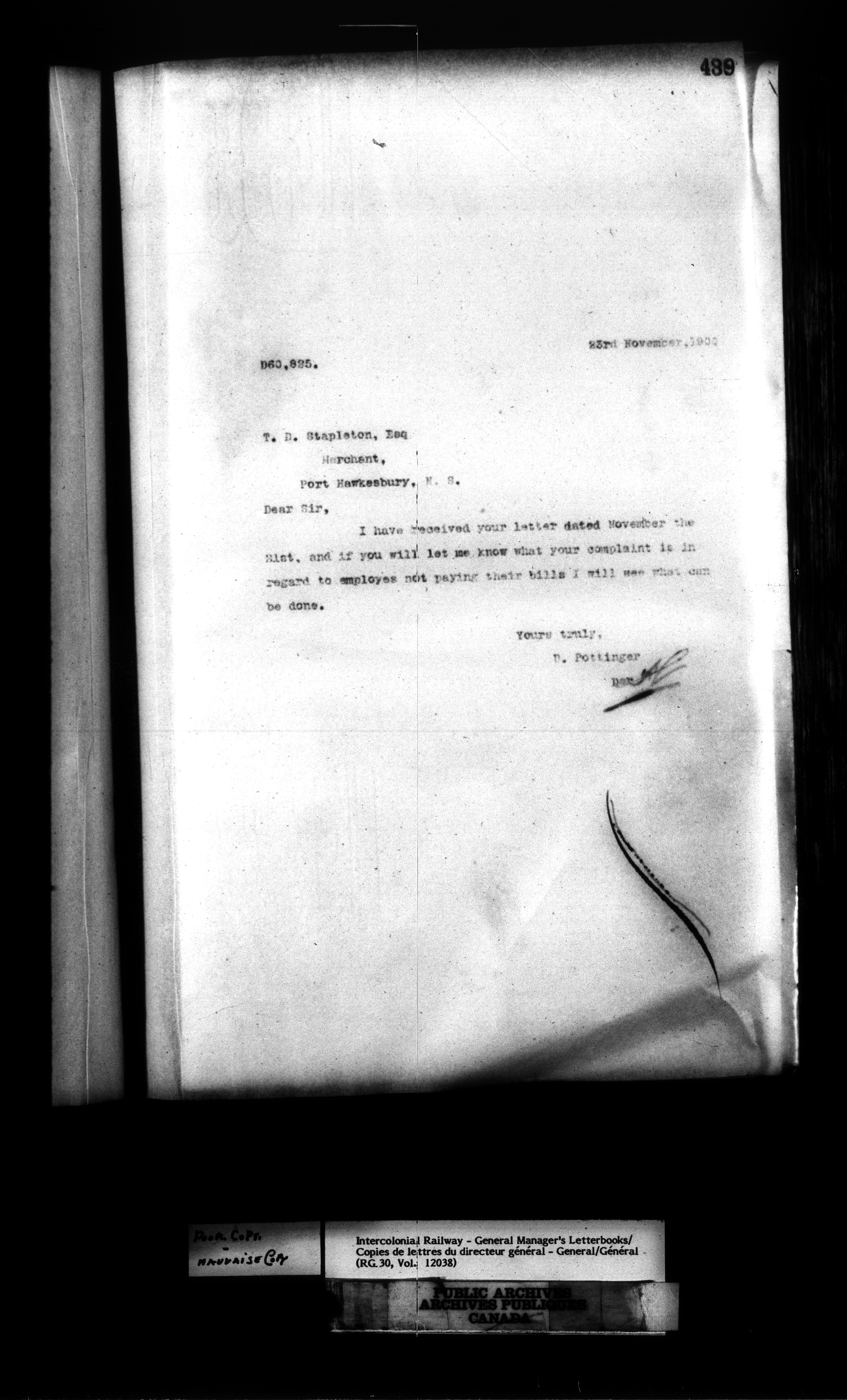 Canadian Government Railways : Office of the General Manager, Outward correspondence - 11420