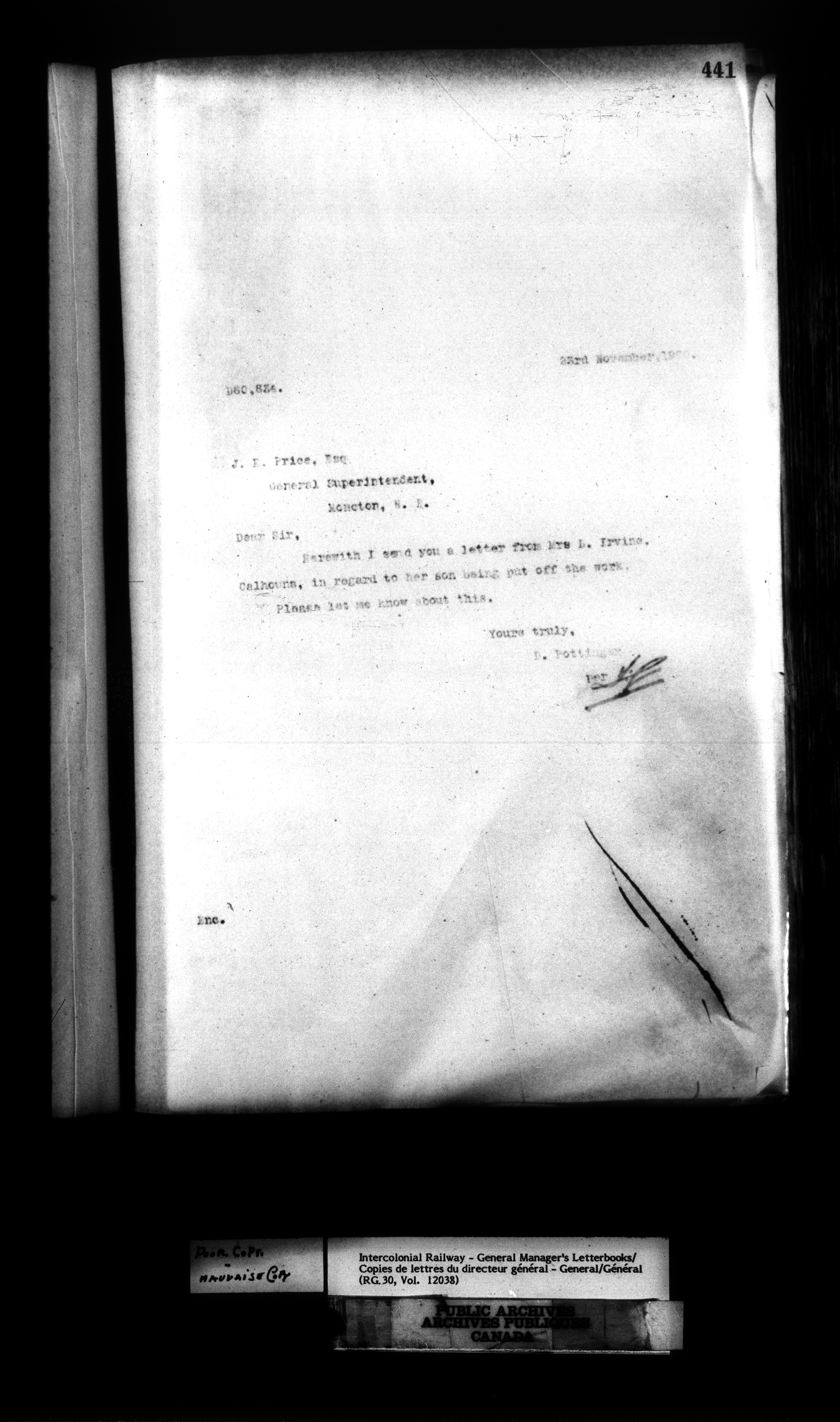 Canadian Government Railways : Office of the General Manager, Outward correspondence - 11420