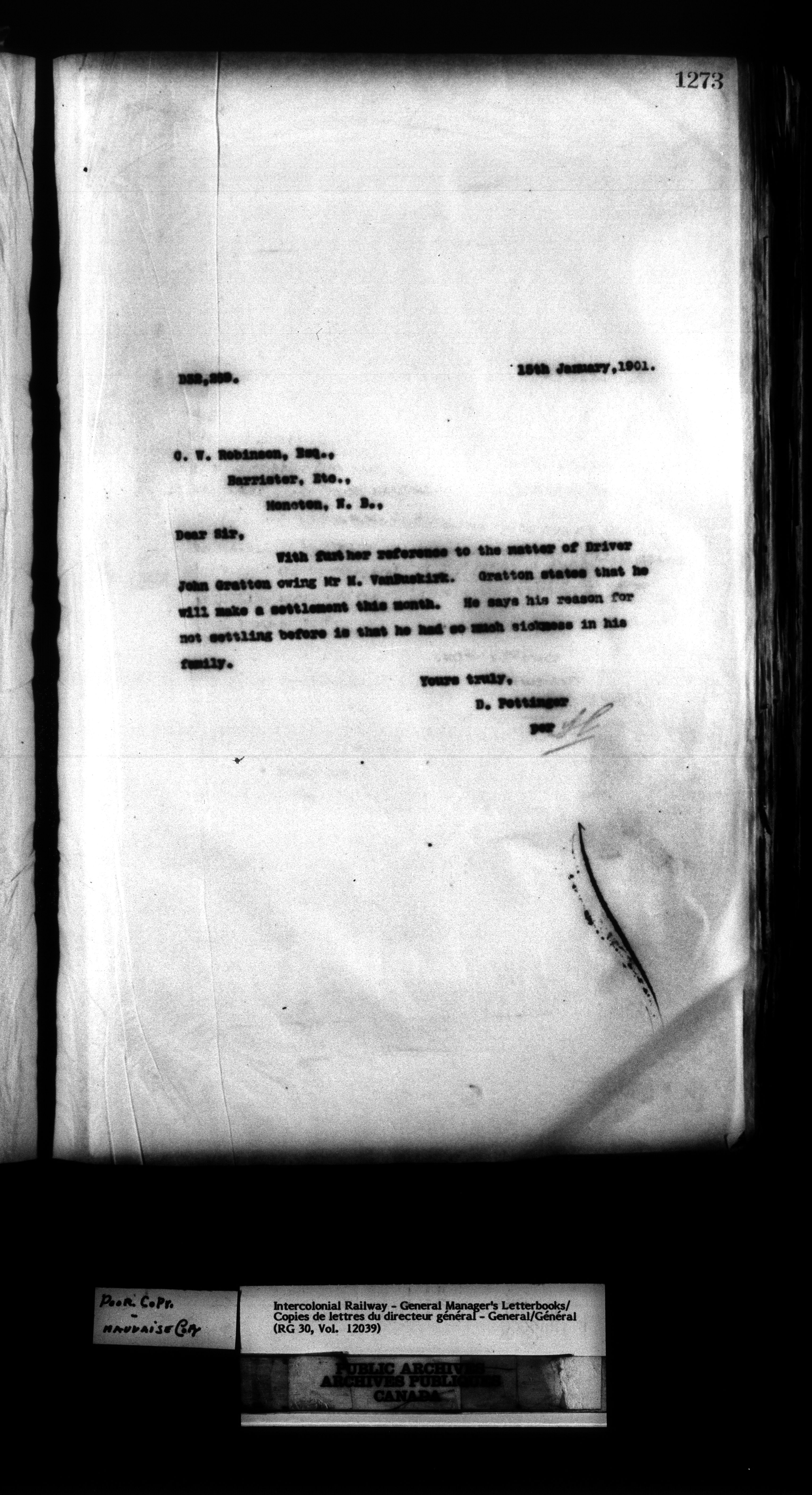 Canadian Government Railways : Office of the General Manager, Outward correspondence - 11422