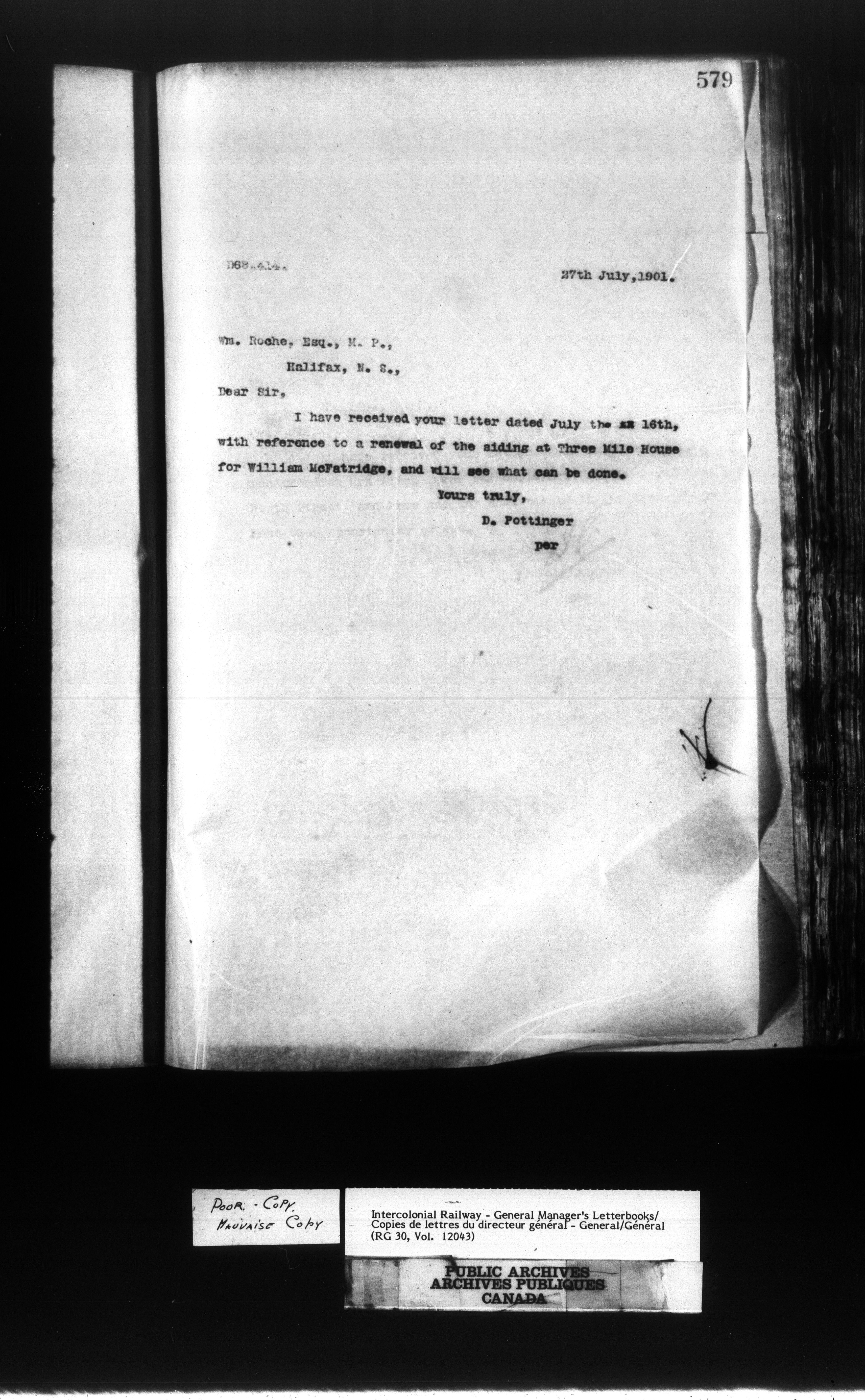 Canadian Government Railways : Office of the General Manager, Outward correspondence - 11427
