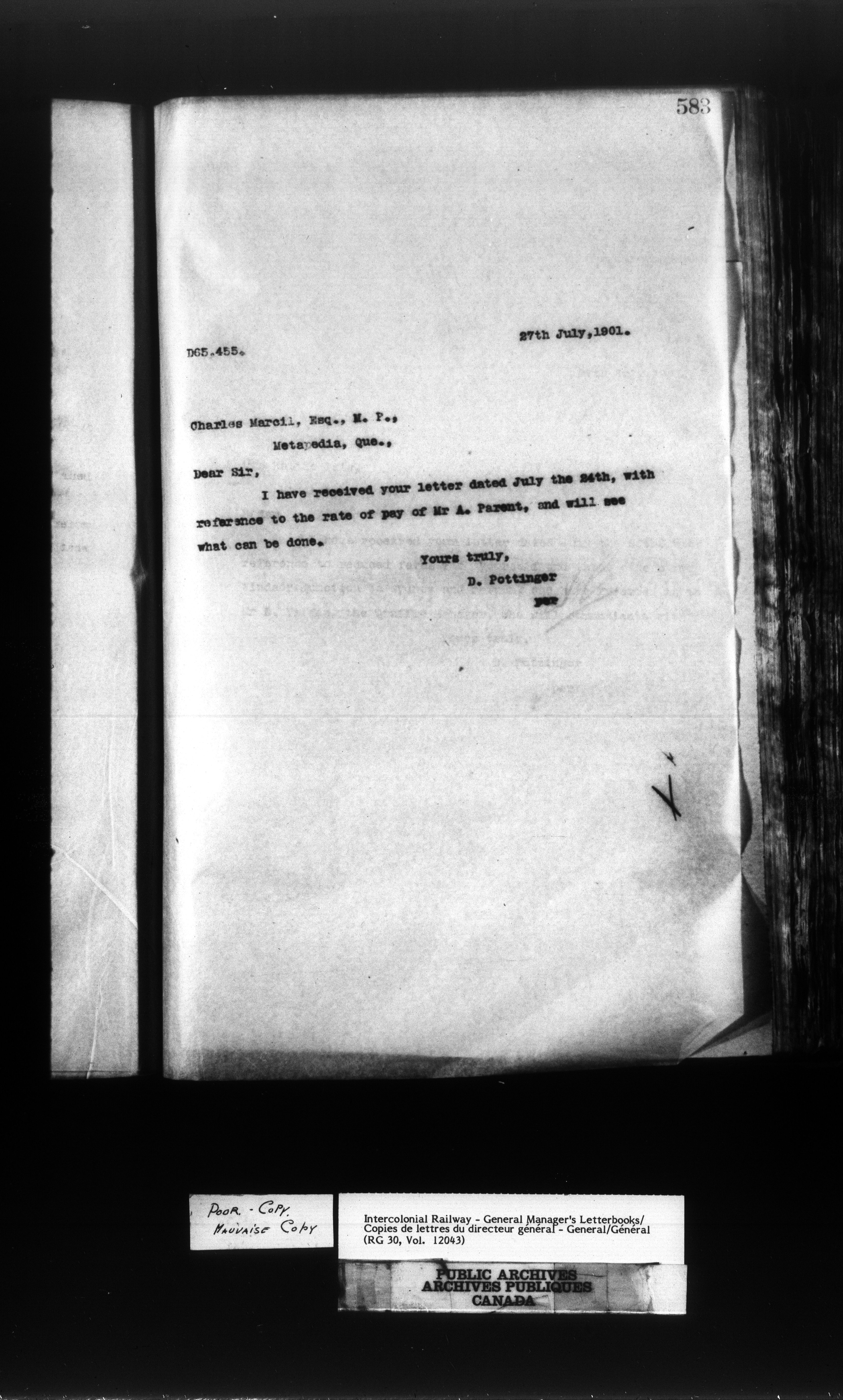 Canadian Government Railways : Office of the General Manager, Outward correspondence - 11427