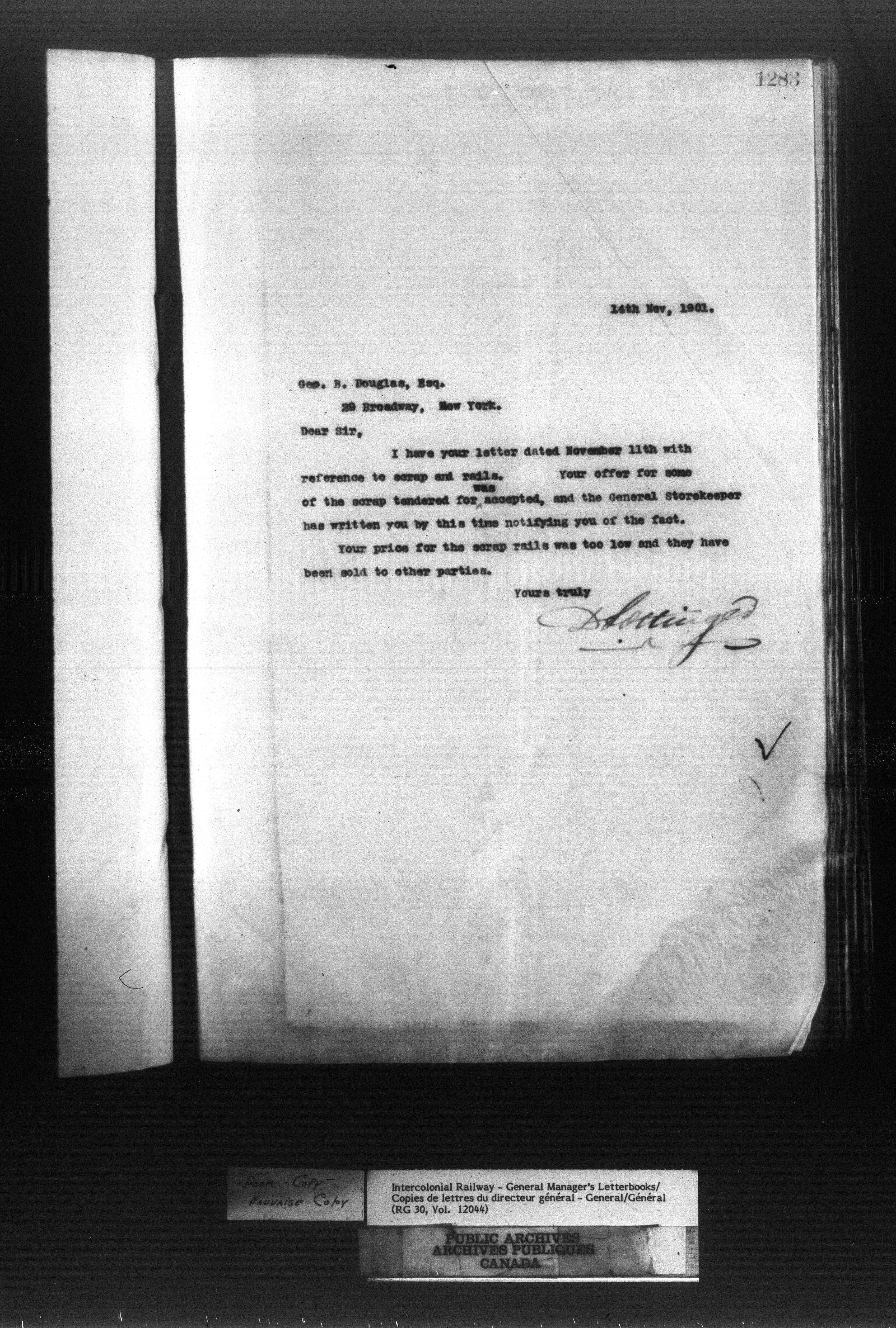 Canadian Government Railways : Office of the General Manager, Outward correspondence - 11428