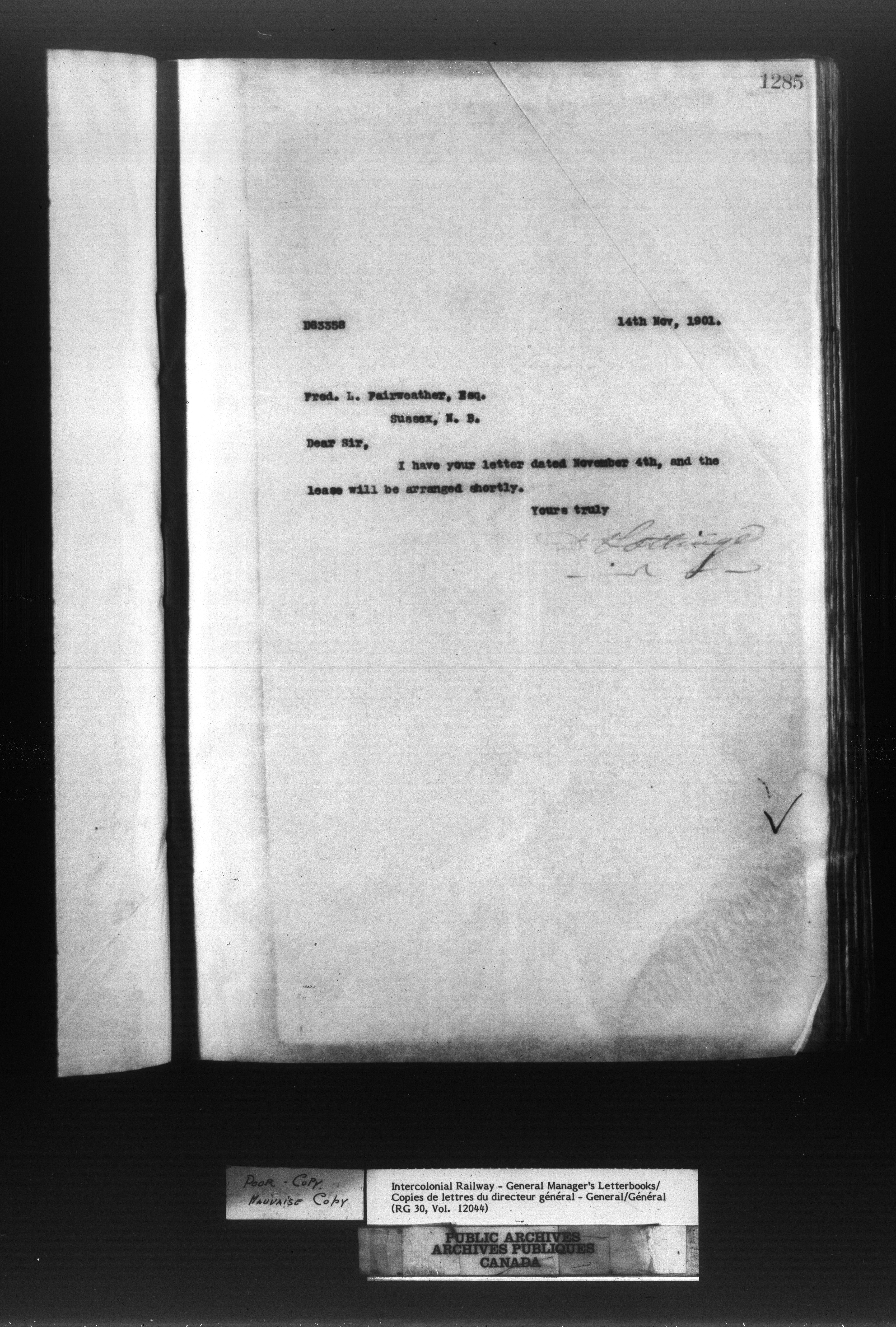 Canadian Government Railways : Office of the General Manager, Outward correspondence - 11428