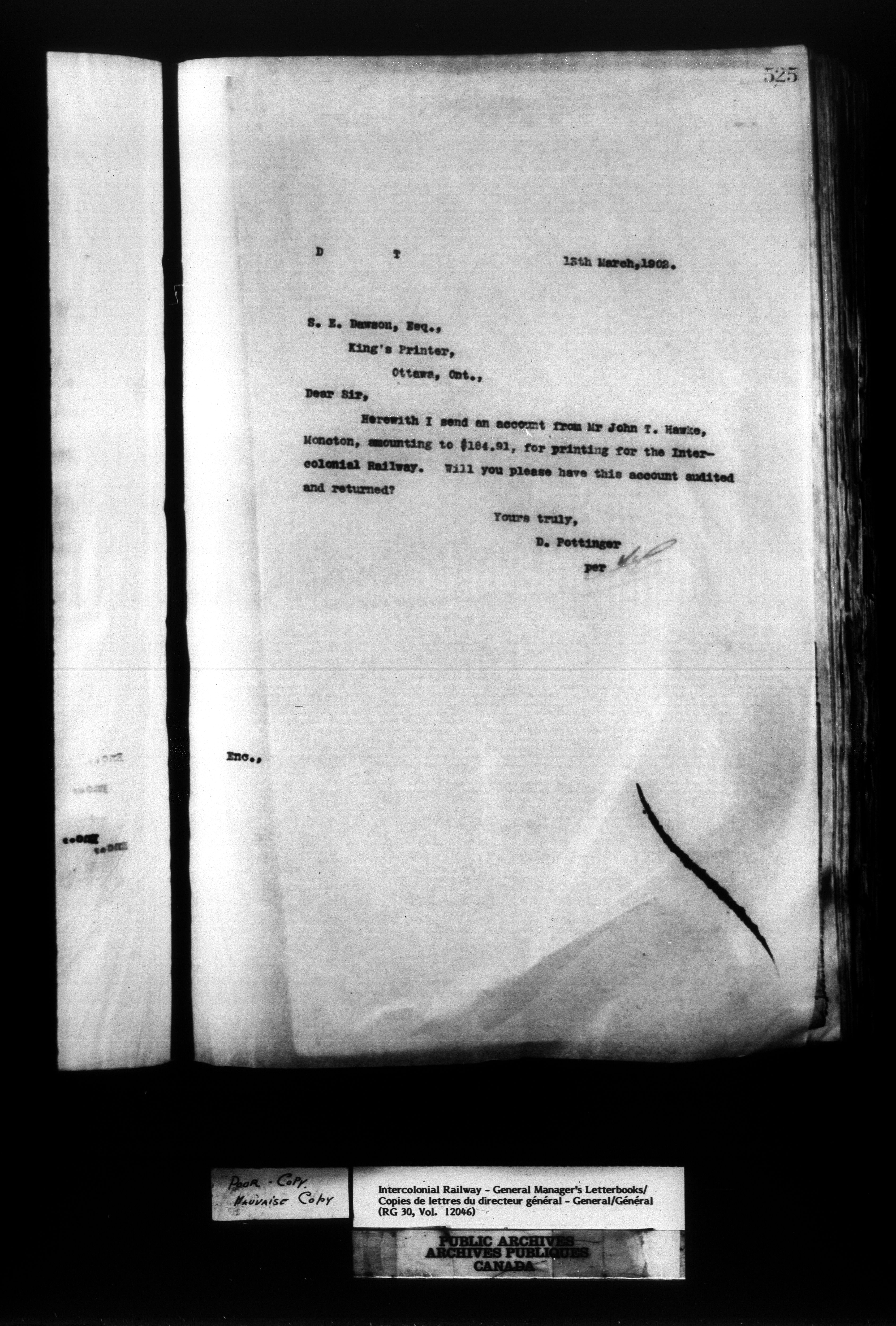 Canadian Government Railways : Office of the General Manager, Outward correspondence - 11430