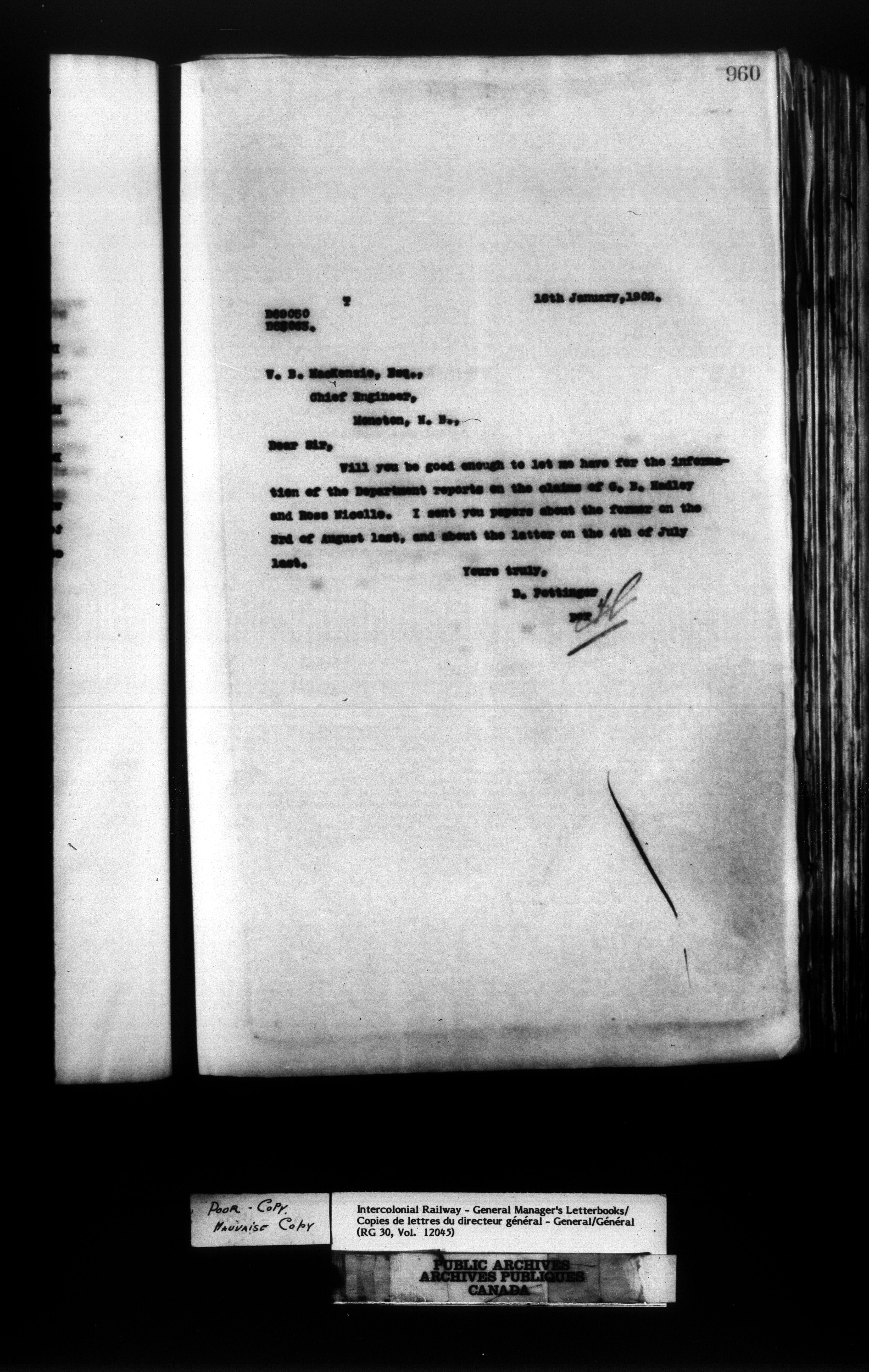 Canadian Government Railways : Office of the General Manager, Outward correspondence - 11430