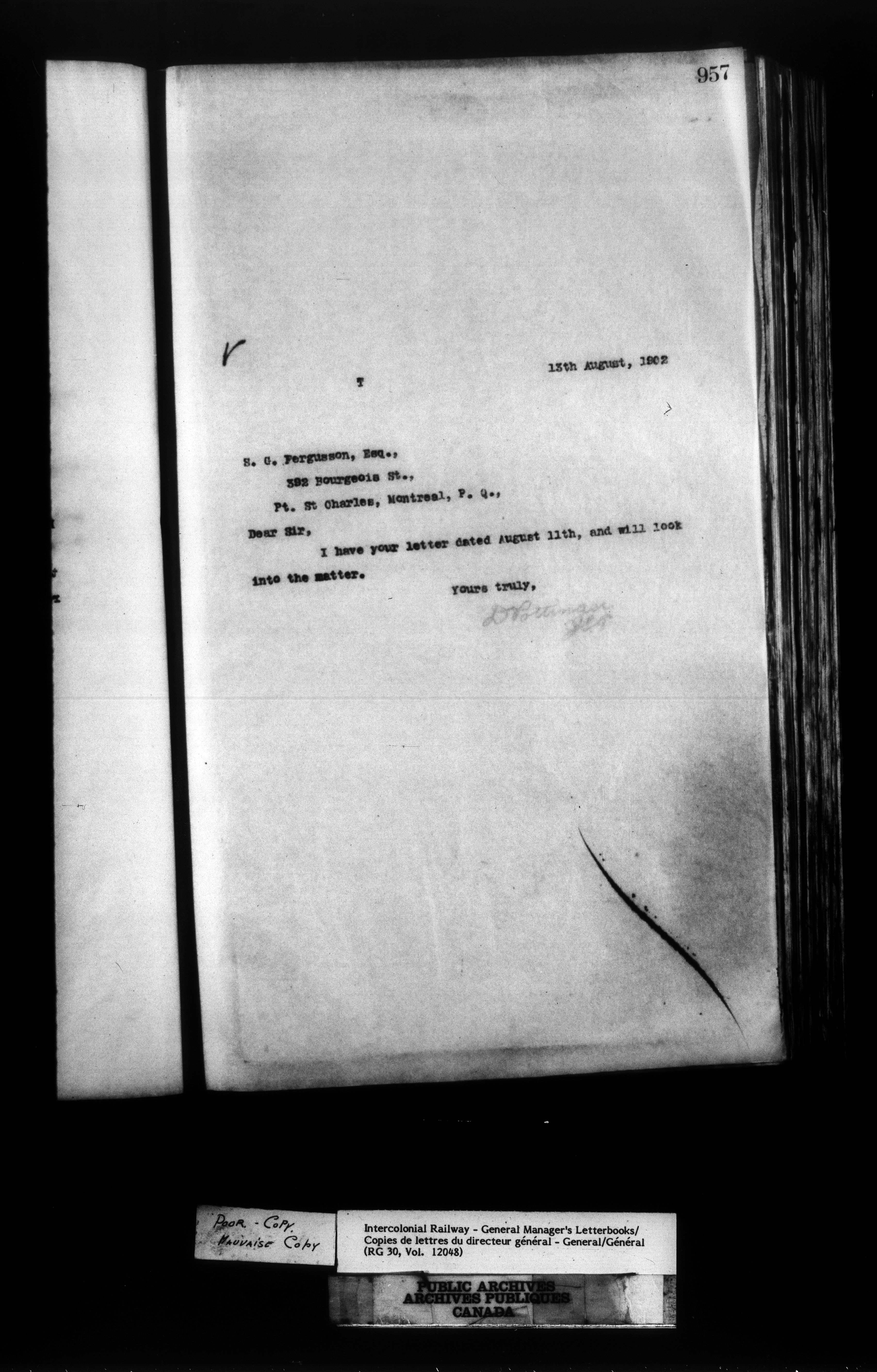 Canadian Government Railways : Office of the General Manager, Outward correspondence - 11433