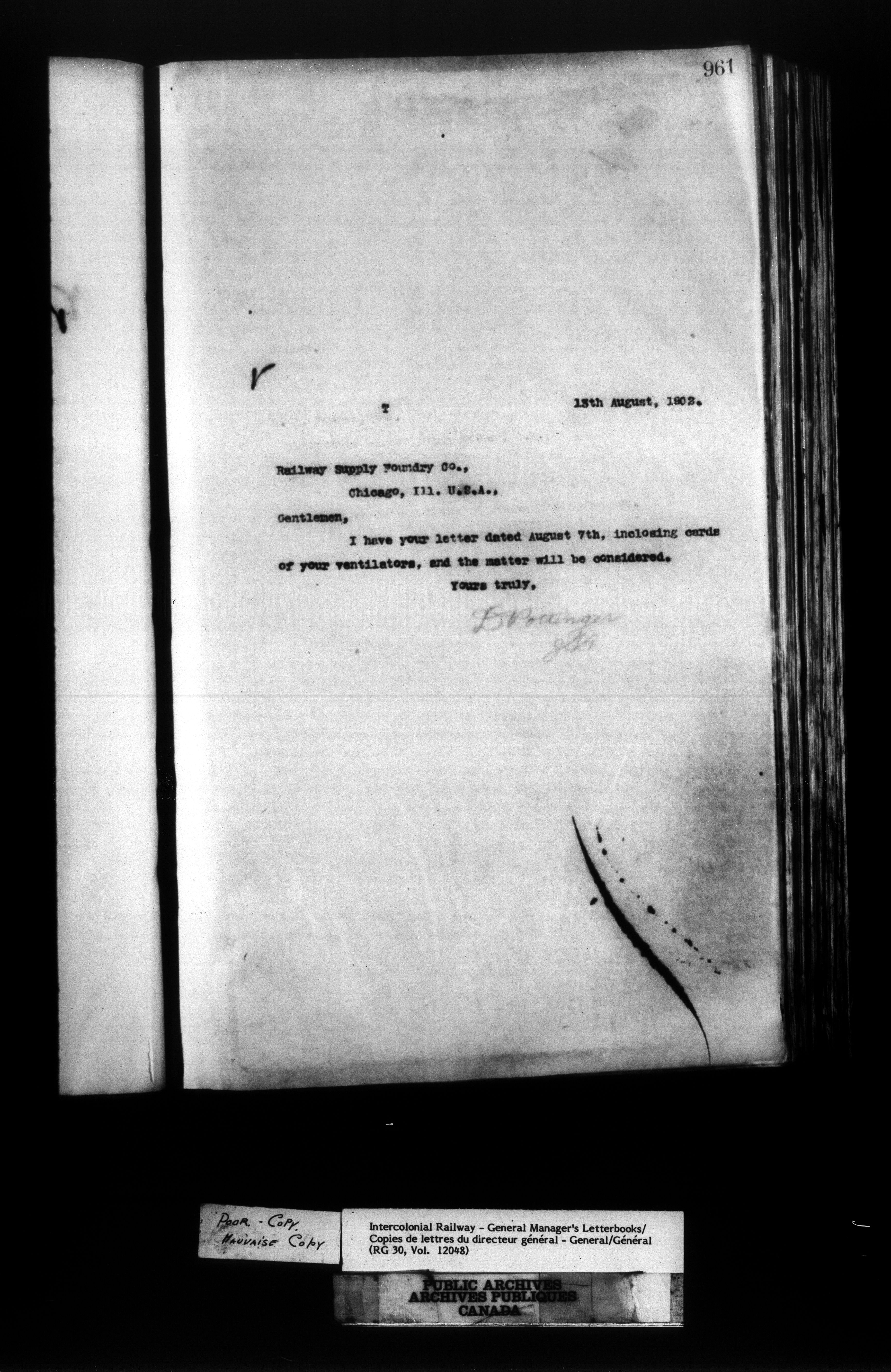 Canadian Government Railways : Office of the General Manager, Outward correspondence - 11433