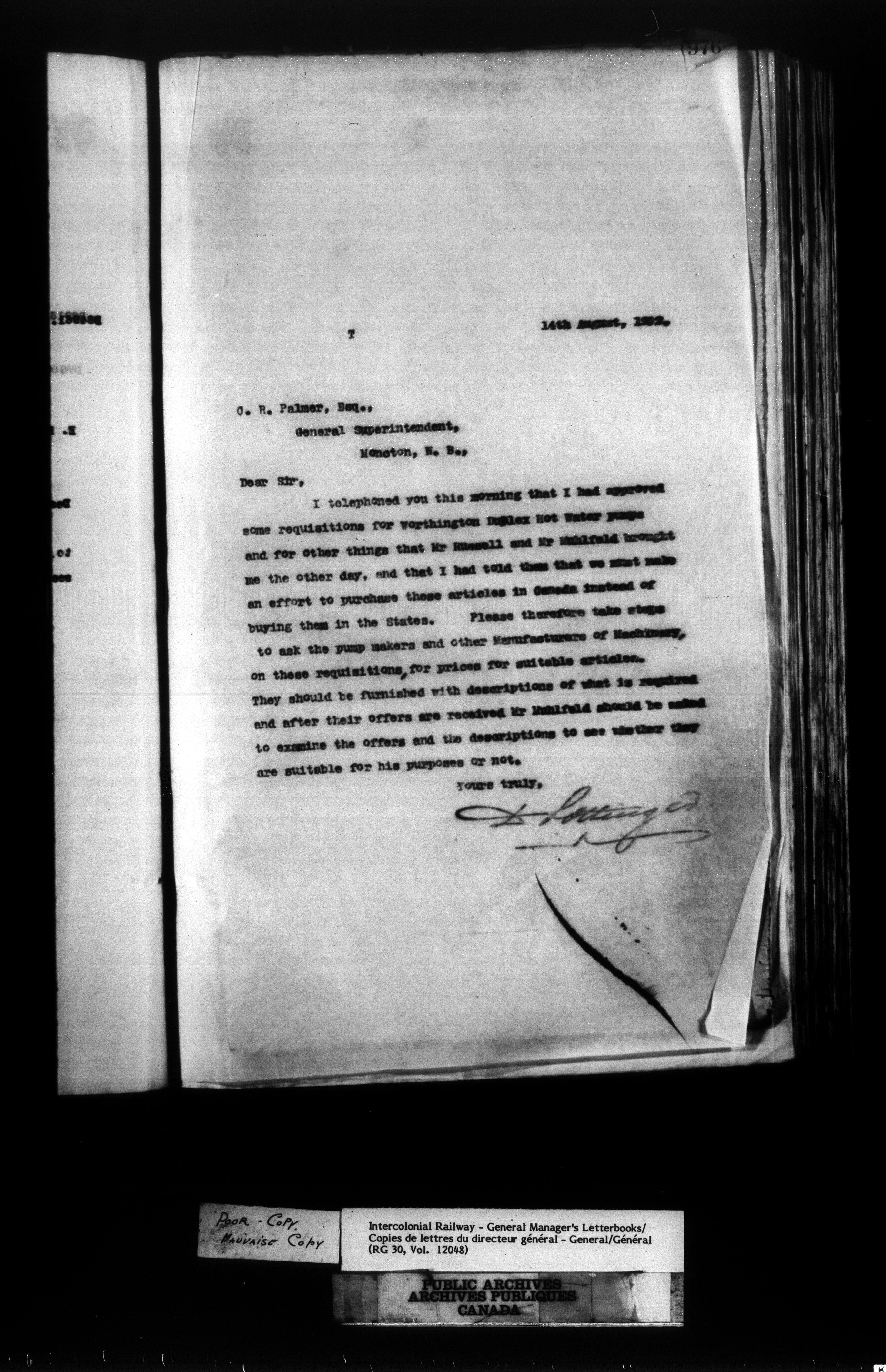 Canadian Government Railways : Office of the General Manager, Outward correspondence - 11433