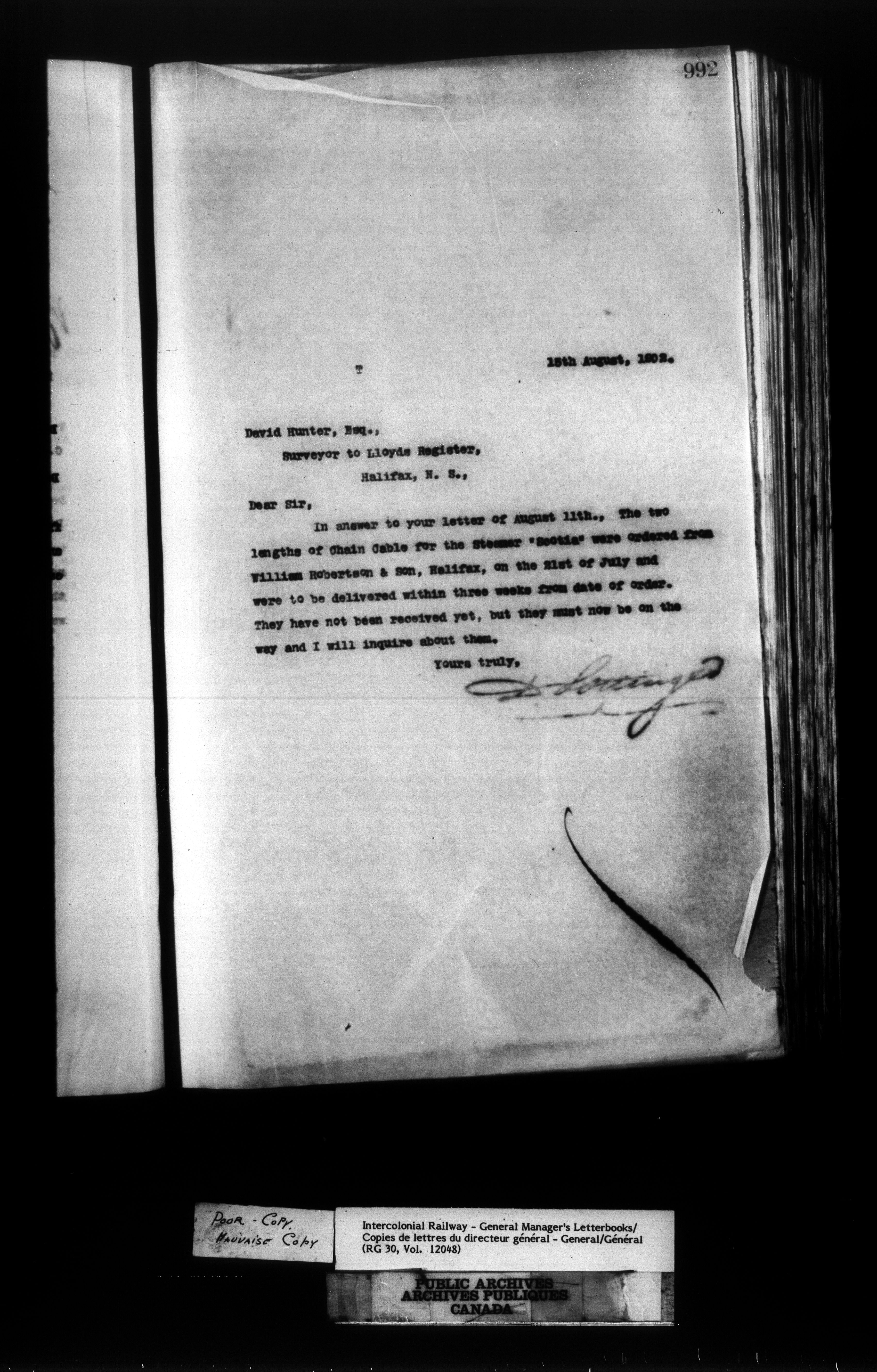 Canadian Government Railways : Office of the General Manager, Outward correspondence - 11433