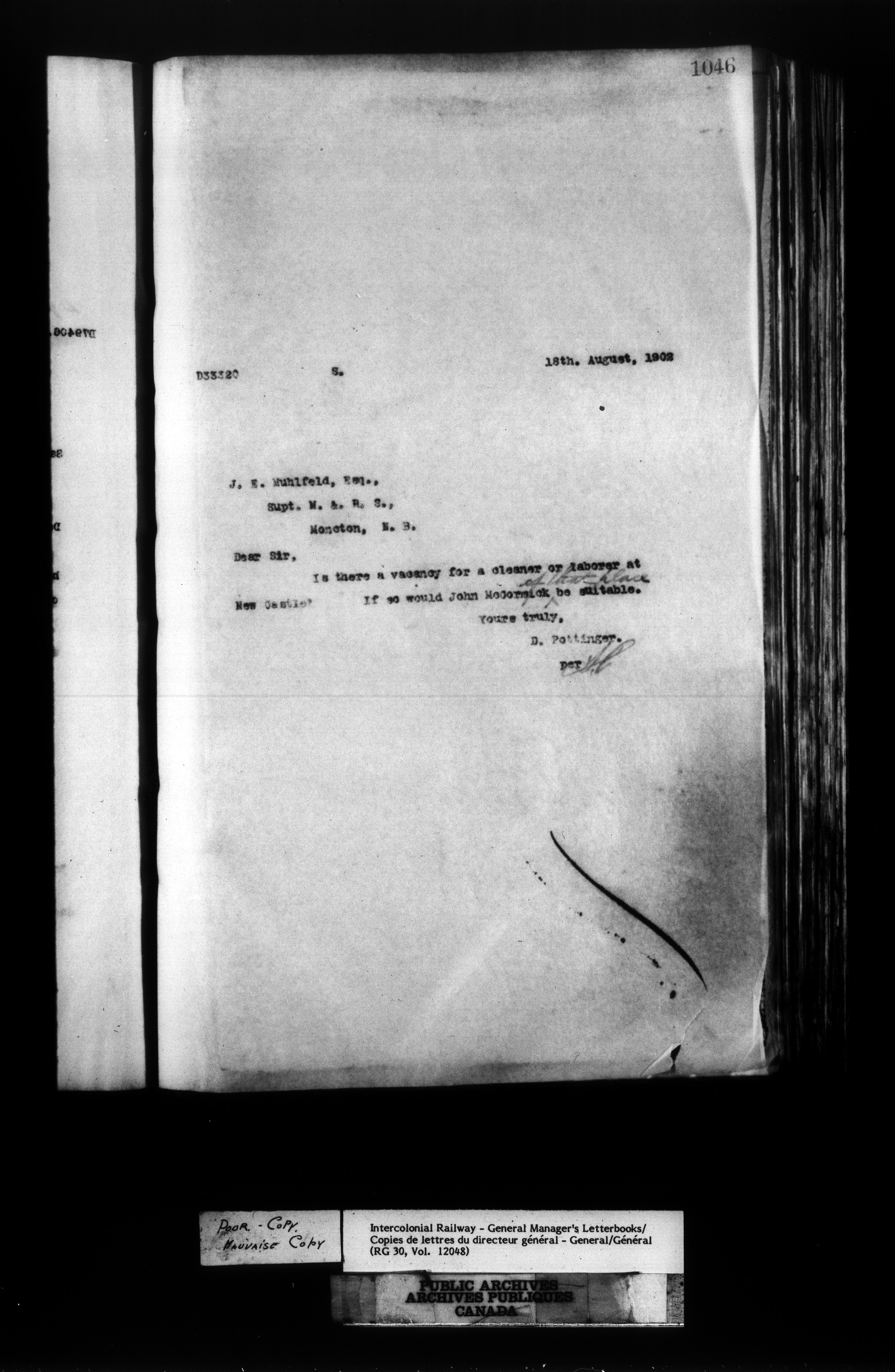 Canadian Government Railways : Office of the General Manager, Outward correspondence - 11433