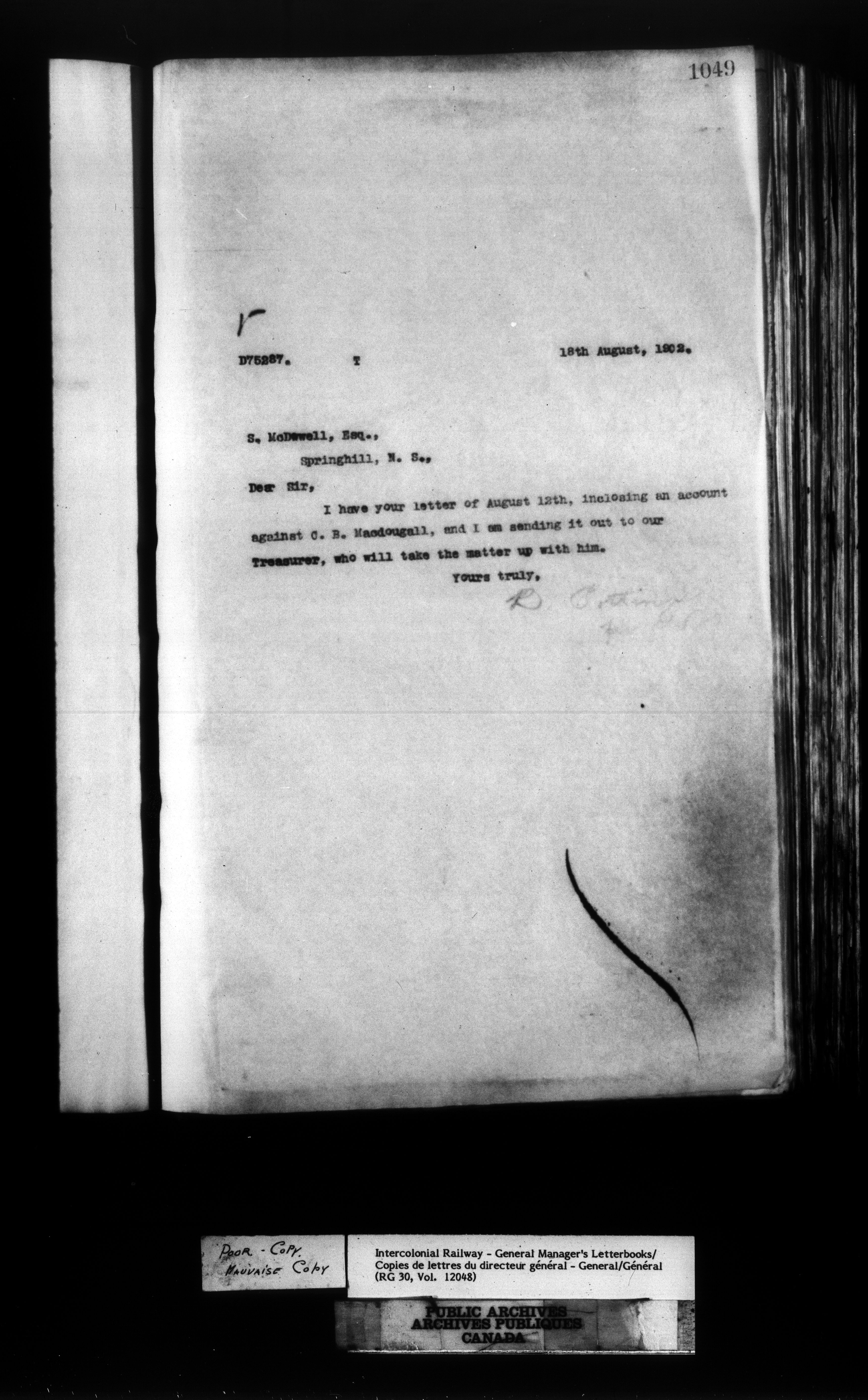 Canadian Government Railways : Office of the General Manager, Outward correspondence - 11433