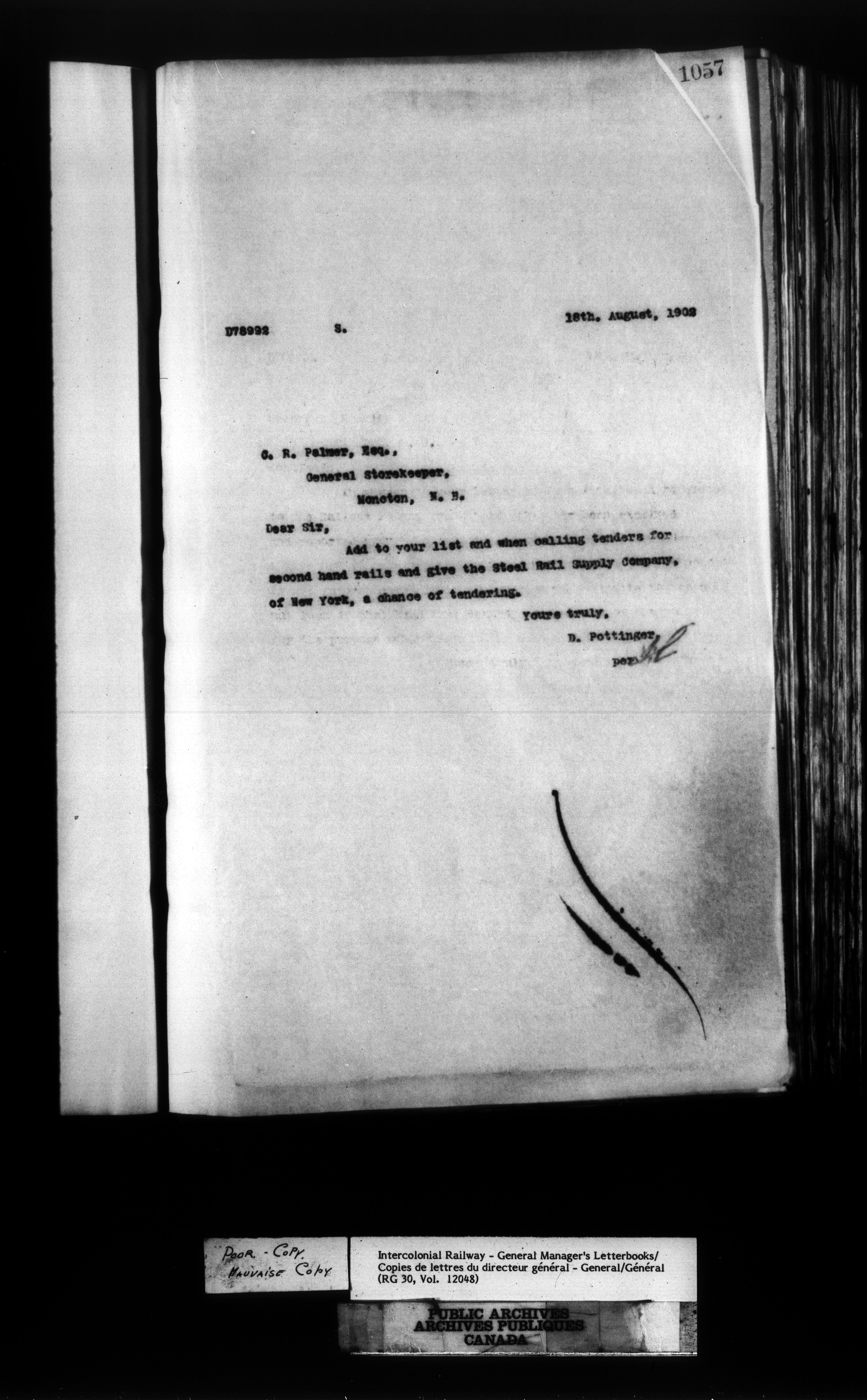 Canadian Government Railways : Office of the General Manager, Outward correspondence - 11433