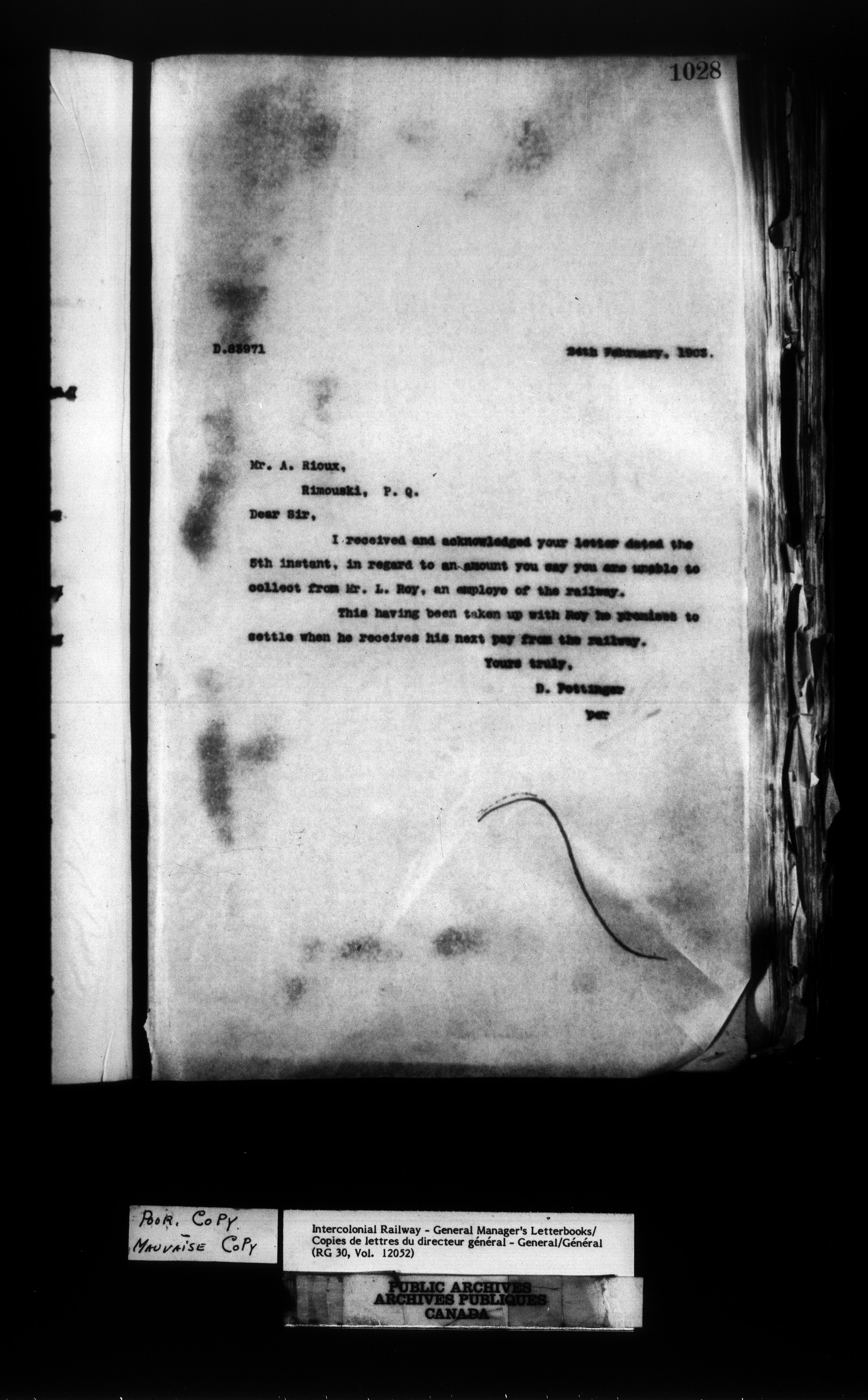 Canadian Government Railways : Office of the General Manager, Outward correspondence - 11439