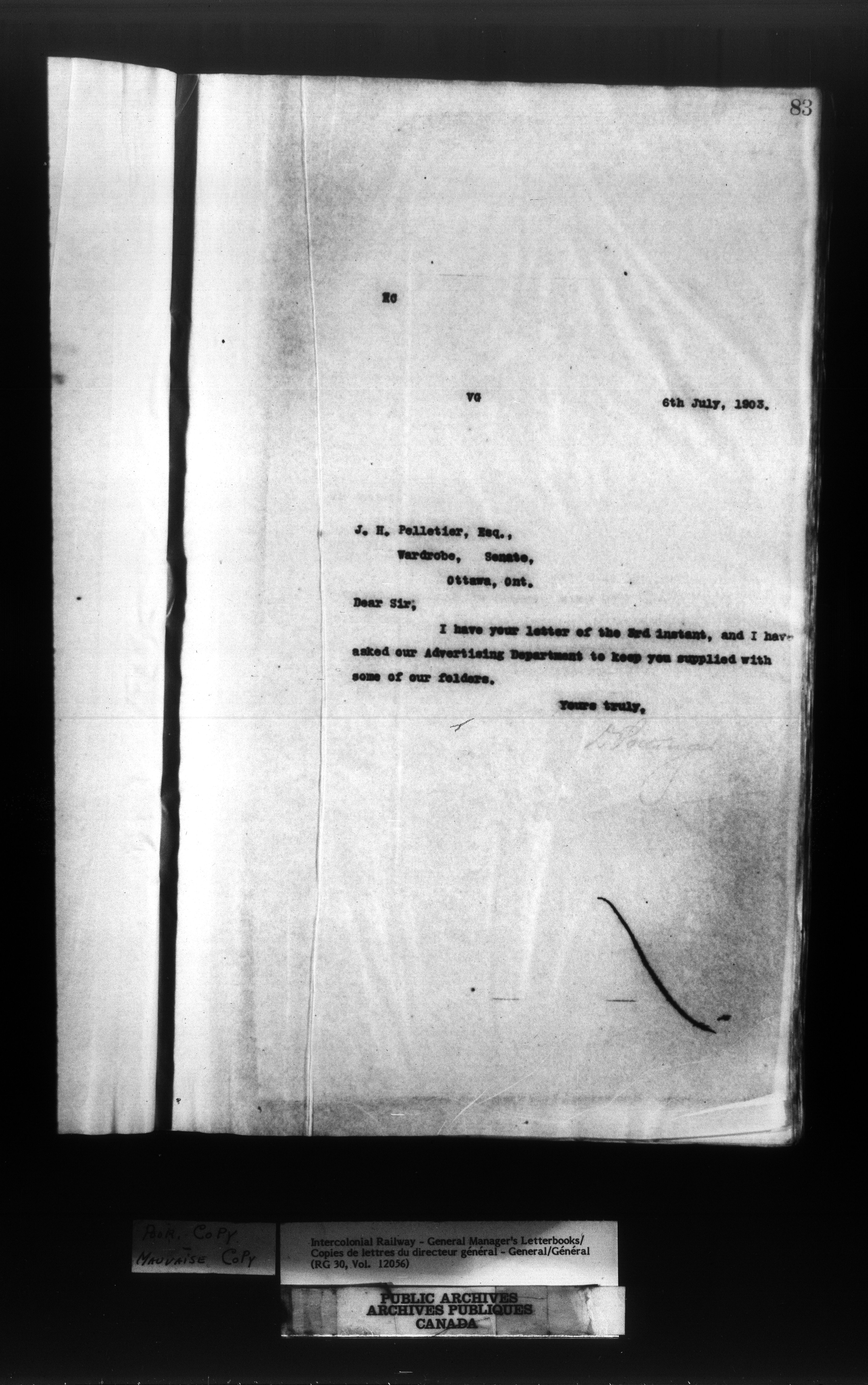 Canadian Government Railways : Office of the General Manager, Outward correspondence - 11442