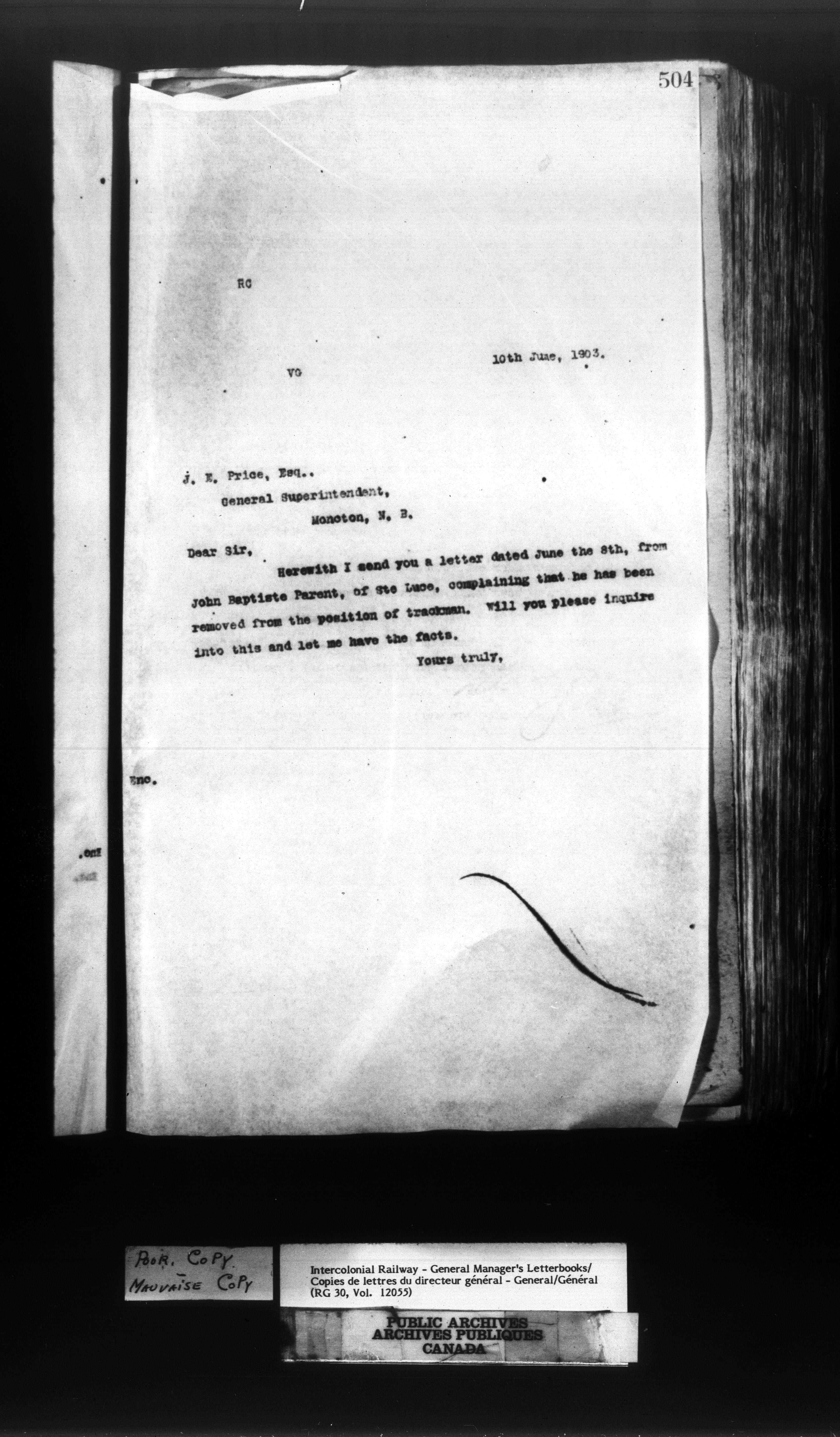 Canadian Government Railways : Office of the General Manager, Outward correspondence - 11442