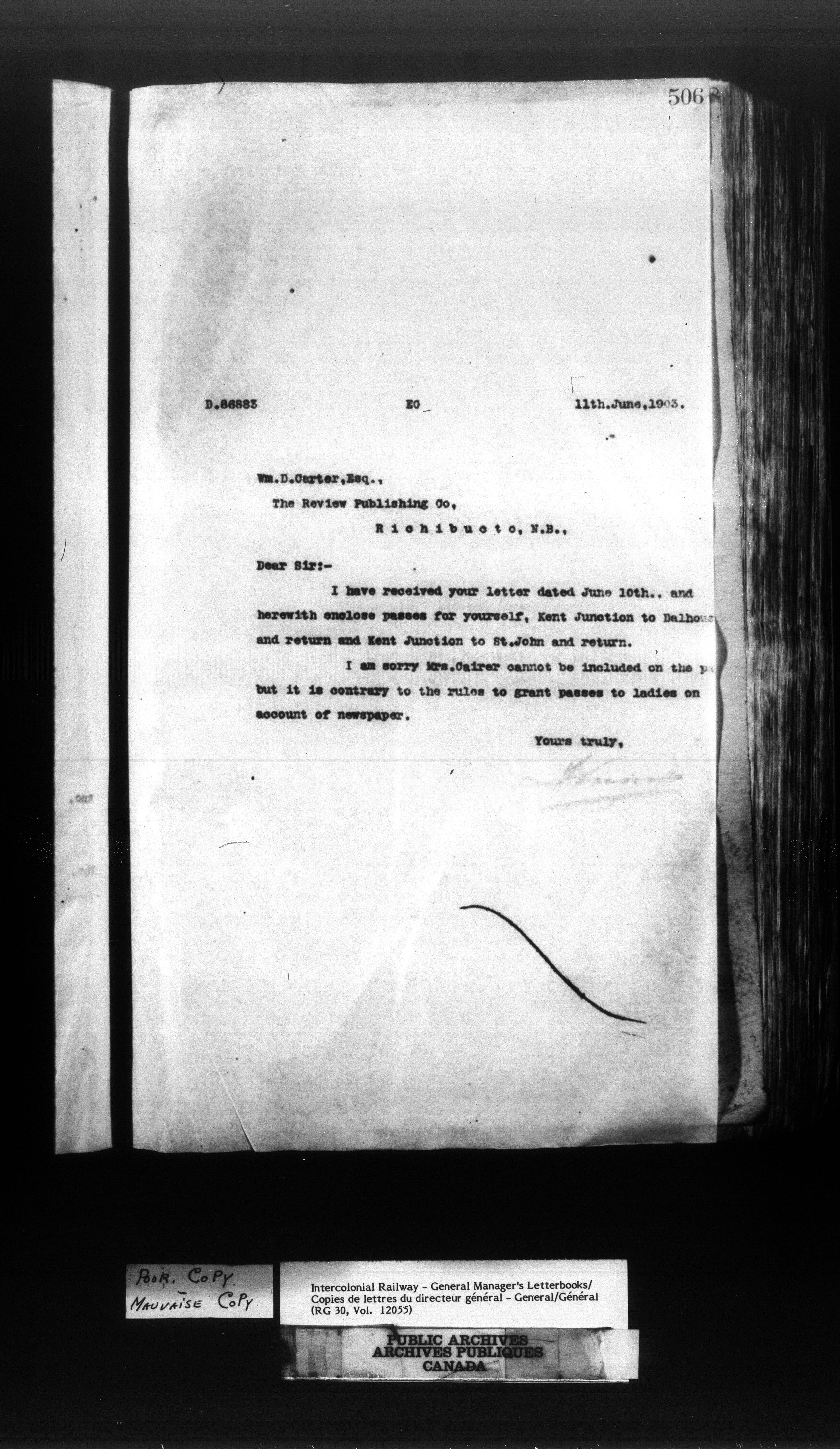 Canadian Government Railways : Office of the General Manager, Outward correspondence - 11442