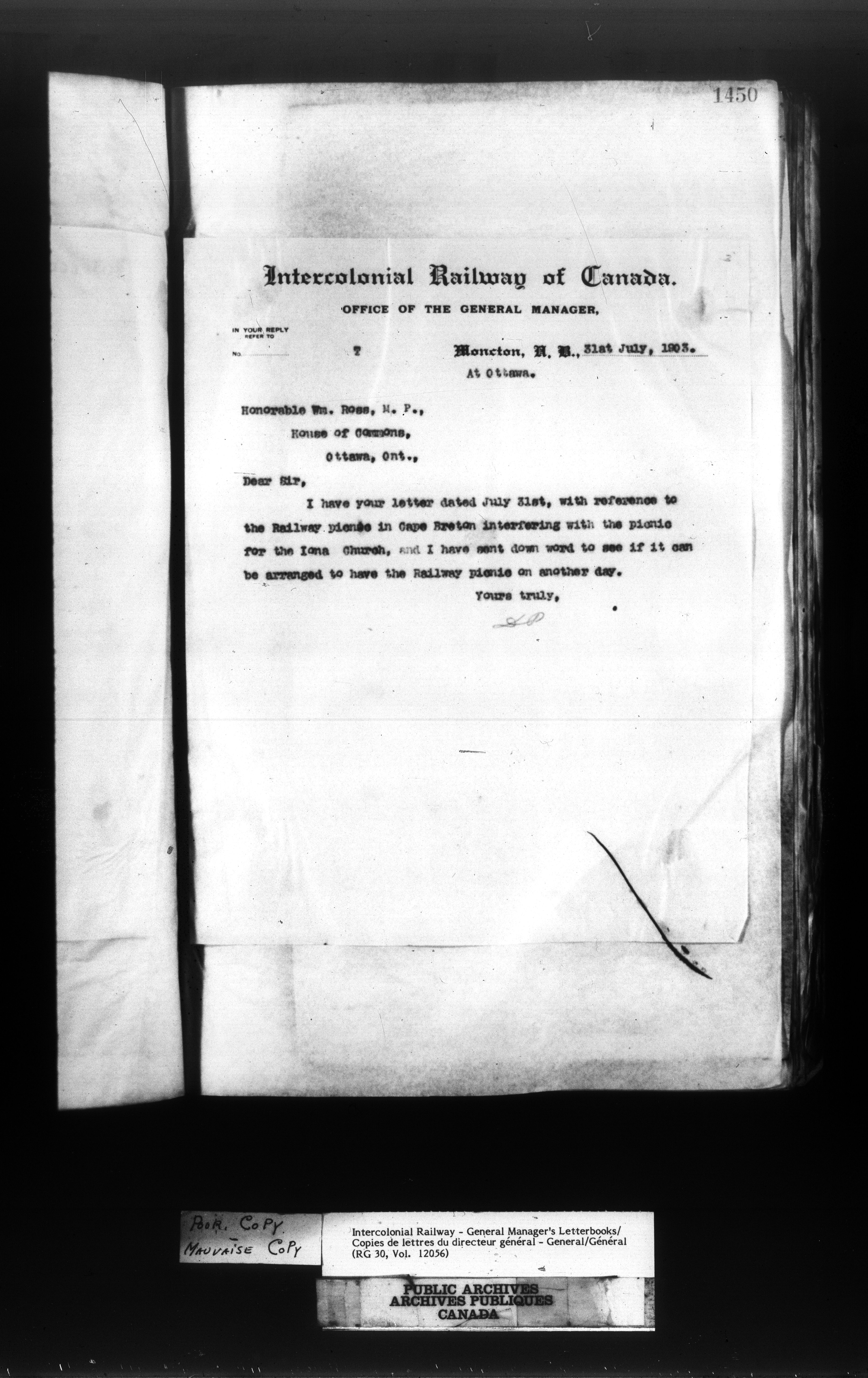Canadian Government Railways : Office of the General Manager, Outward correspondence - 11443