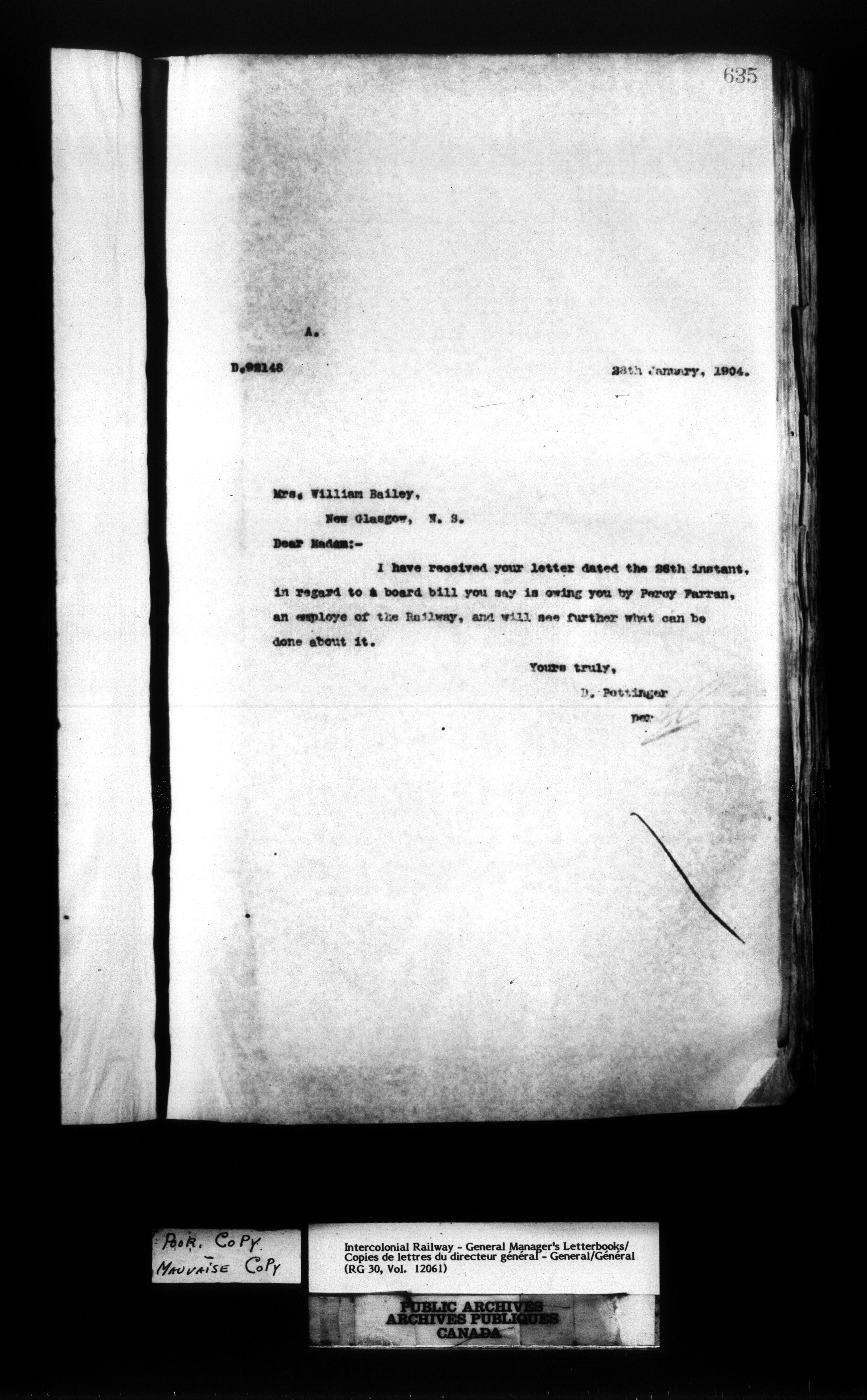 Canadian Government Railways : Office of the General Manager, Outward correspondence - 11448
