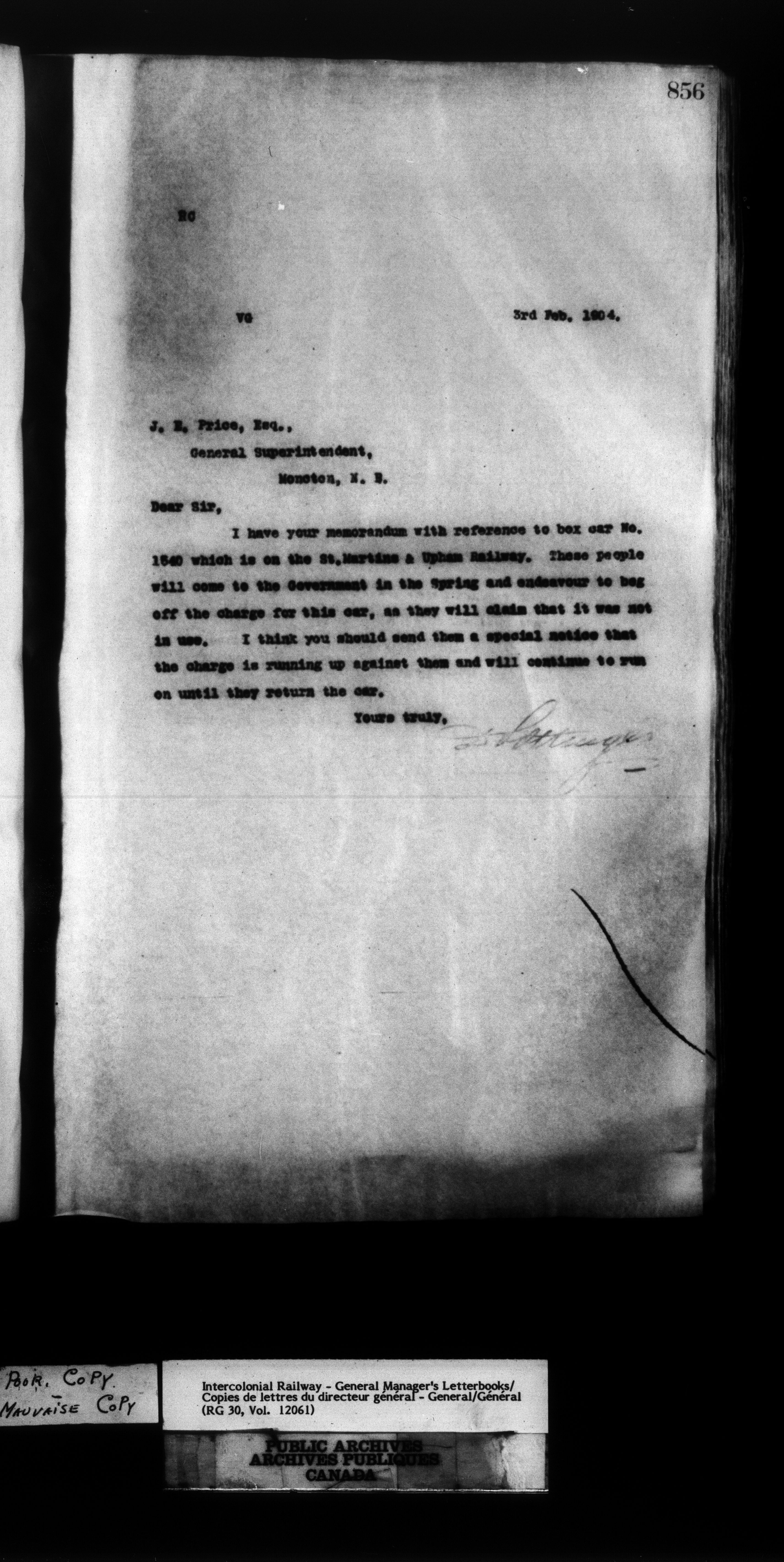Canadian Government Railways : Office of the General Manager, Outward correspondence - 11449
