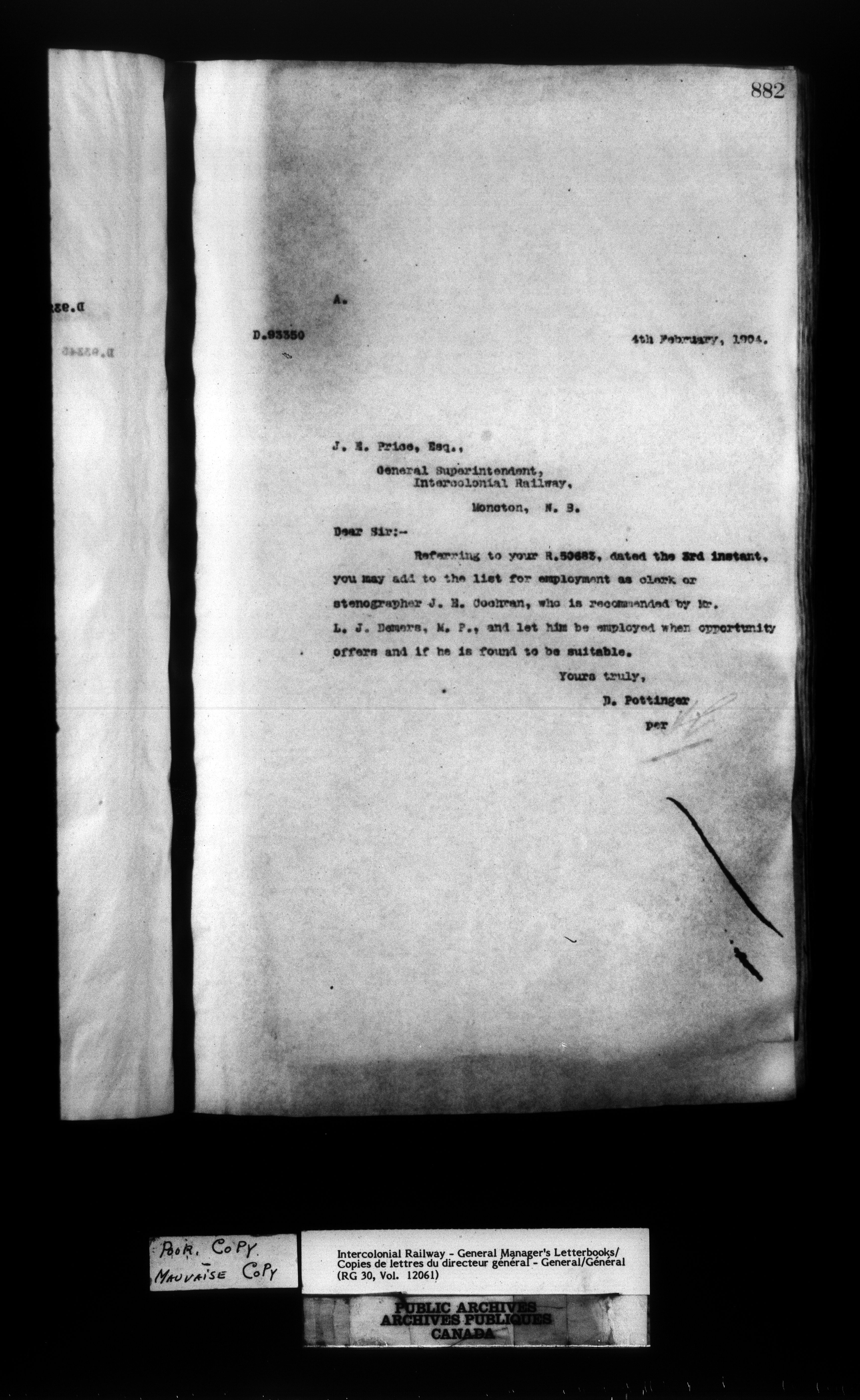 Canadian Government Railways : Office of the General Manager, Outward correspondence - 11449
