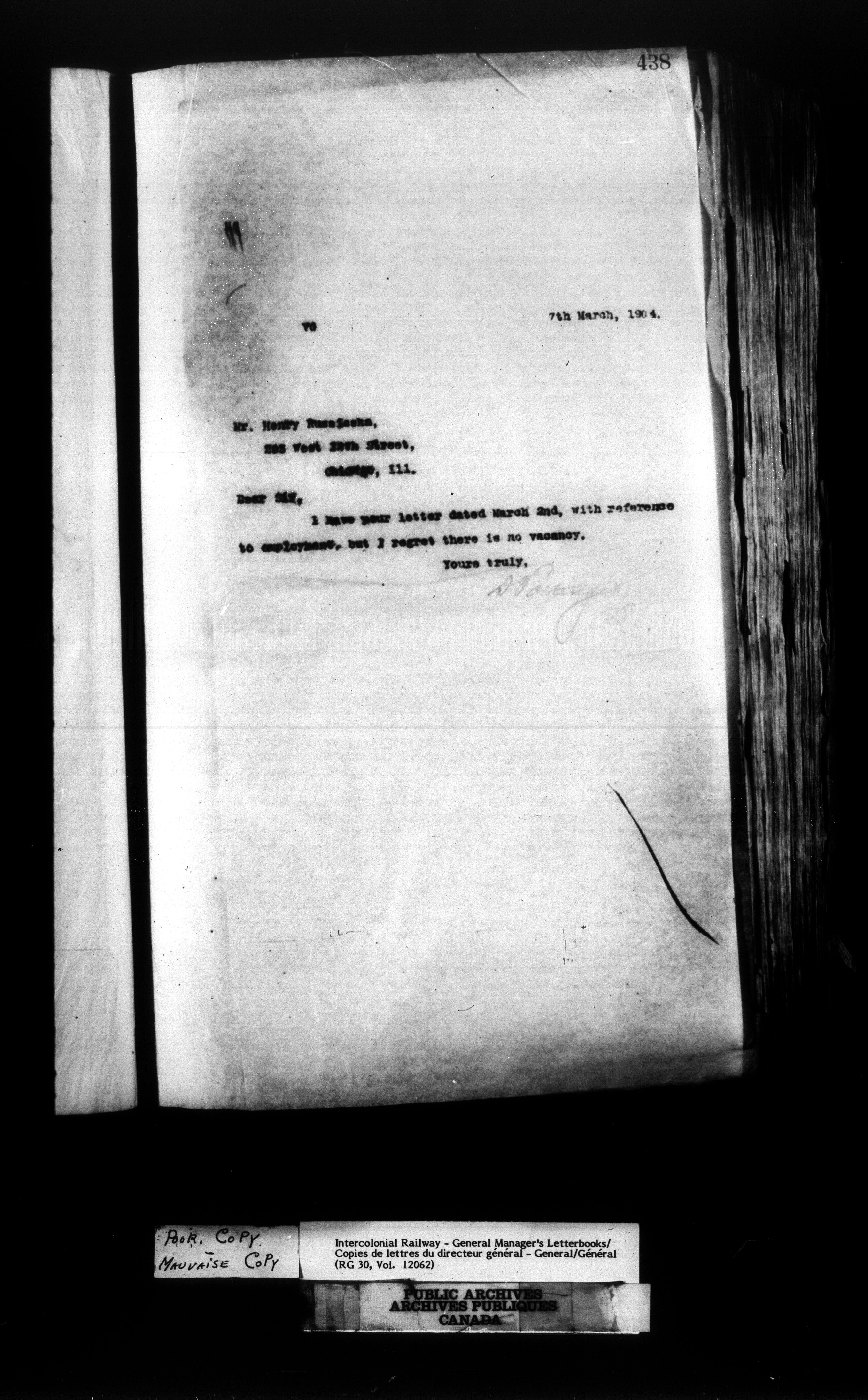 Canadian Government Railways : Office of the General Manager, Outward correspondence - 11450