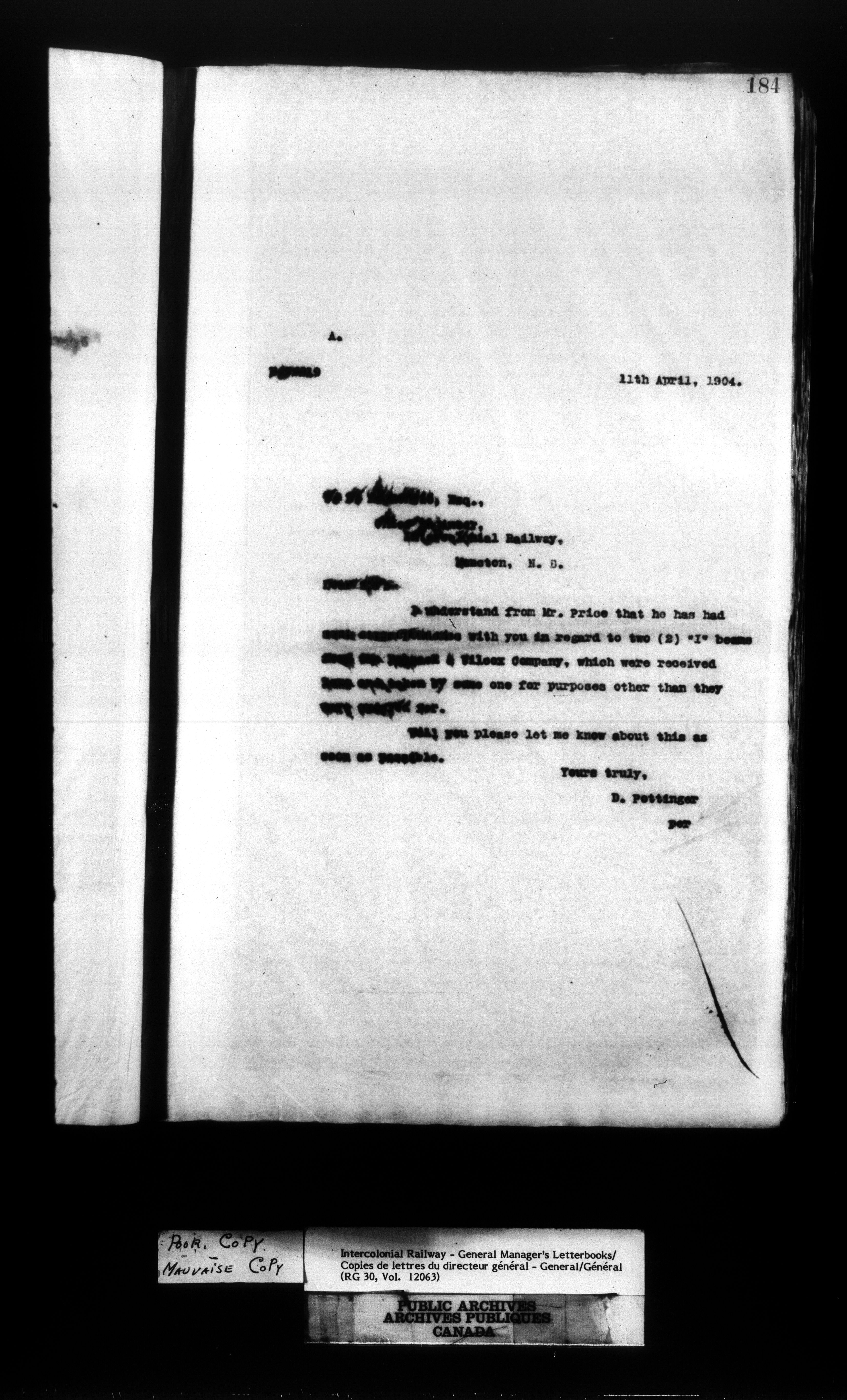 Canadian Government Railways : Office of the General Manager, Outward correspondence - 11451