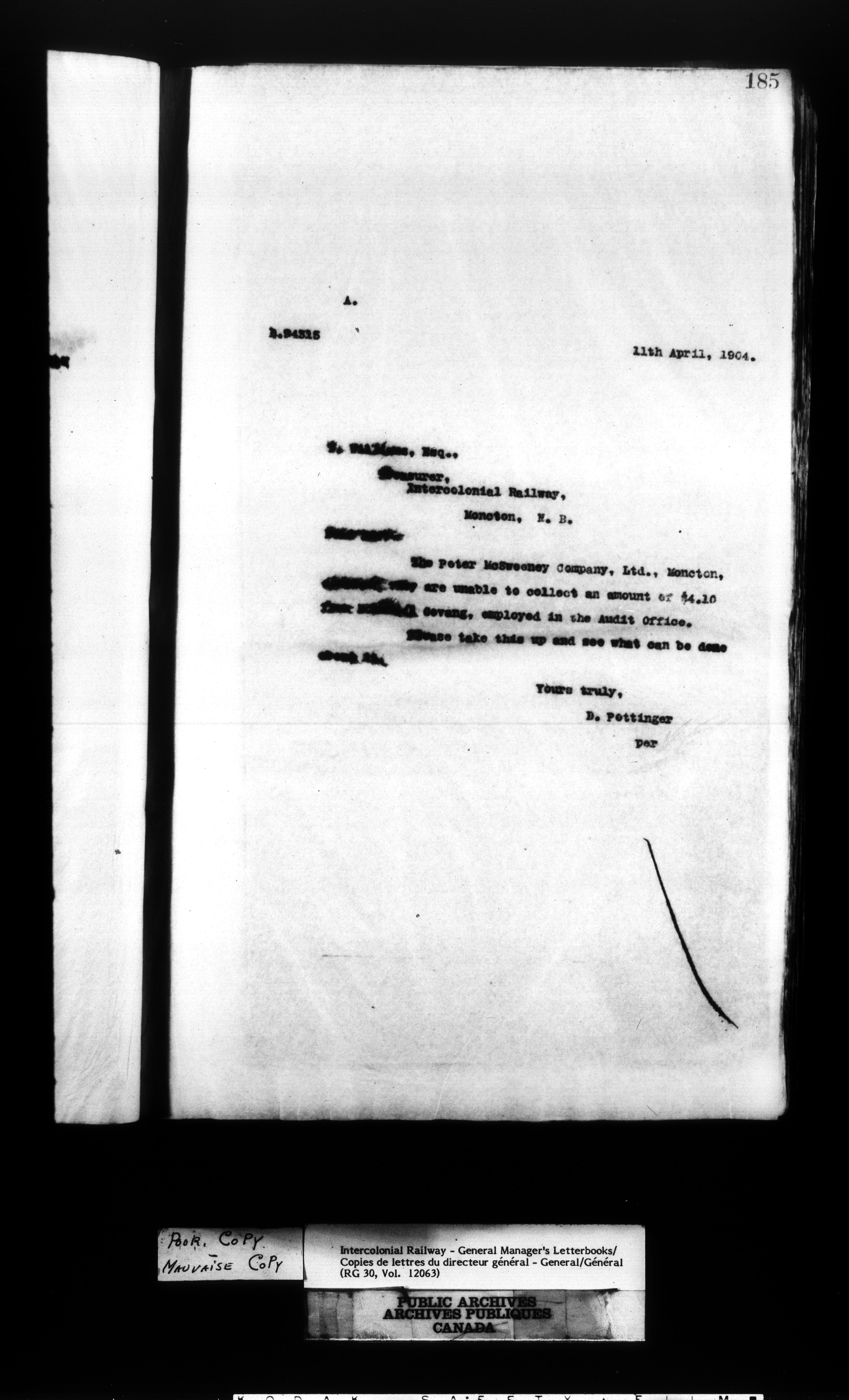 Canadian Government Railways : Office of the General Manager, Outward correspondence - 11451