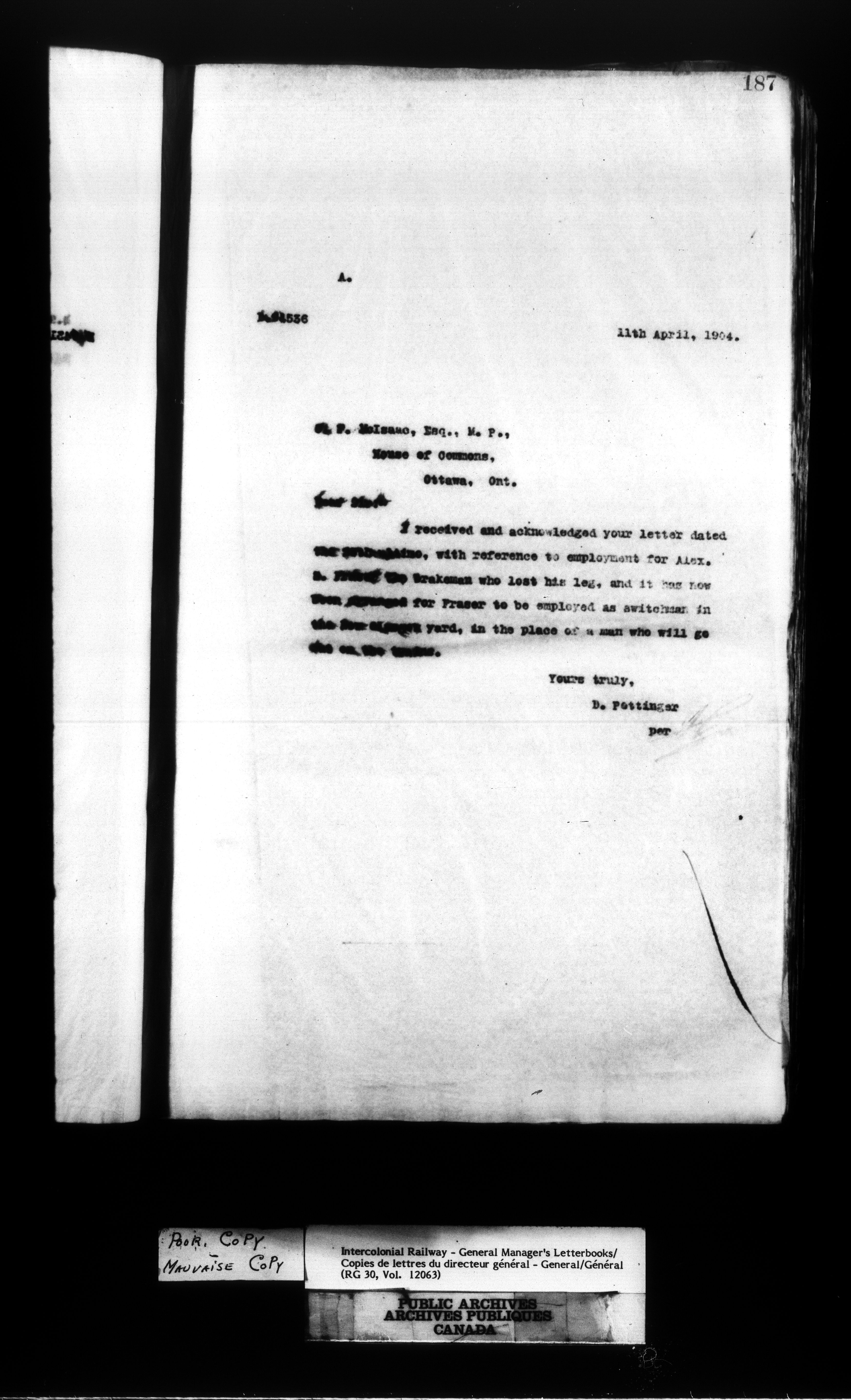 Canadian Government Railways : Office of the General Manager, Outward correspondence - 11451
