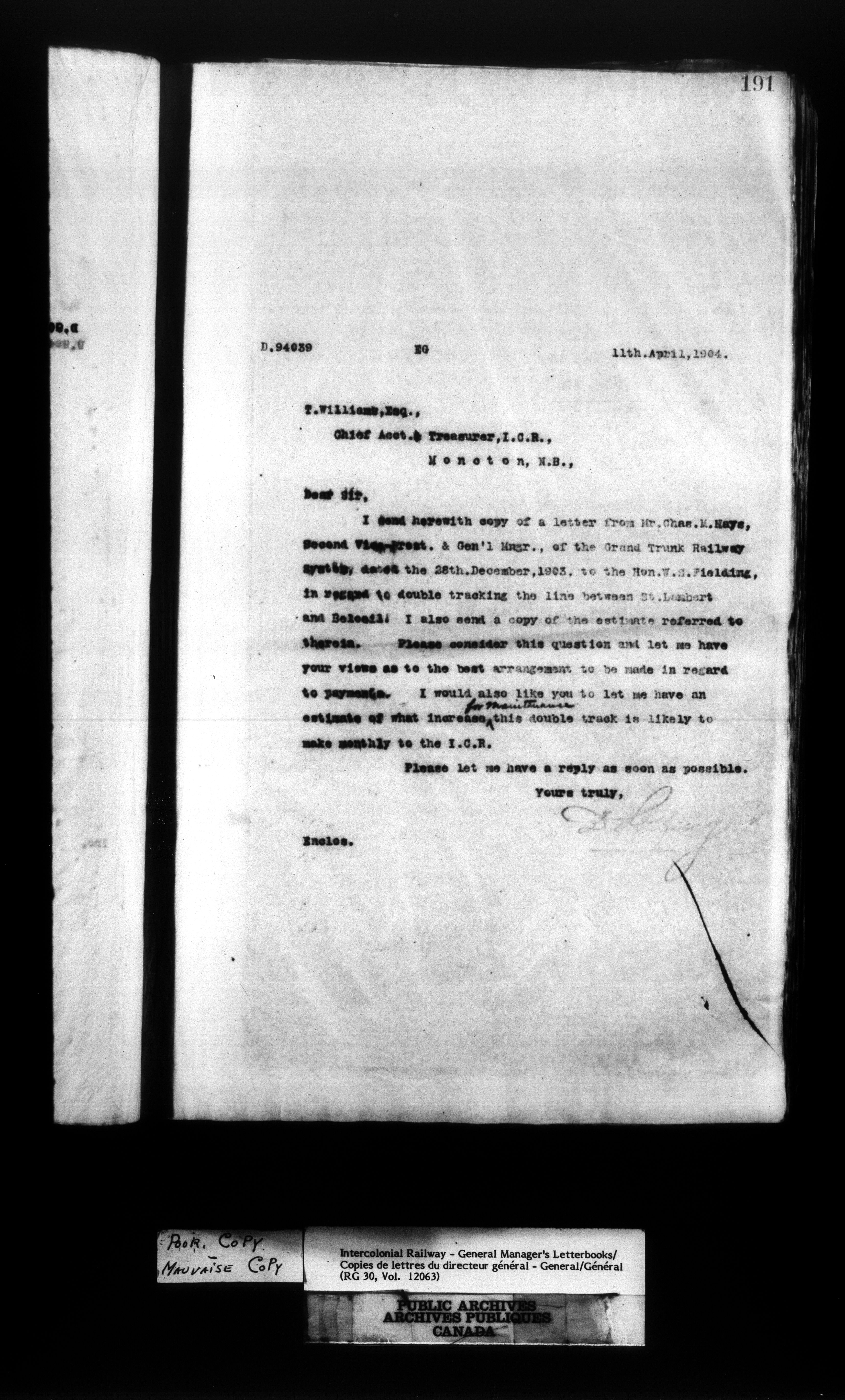 Canadian Government Railways : Office of the General Manager, Outward correspondence - 11451