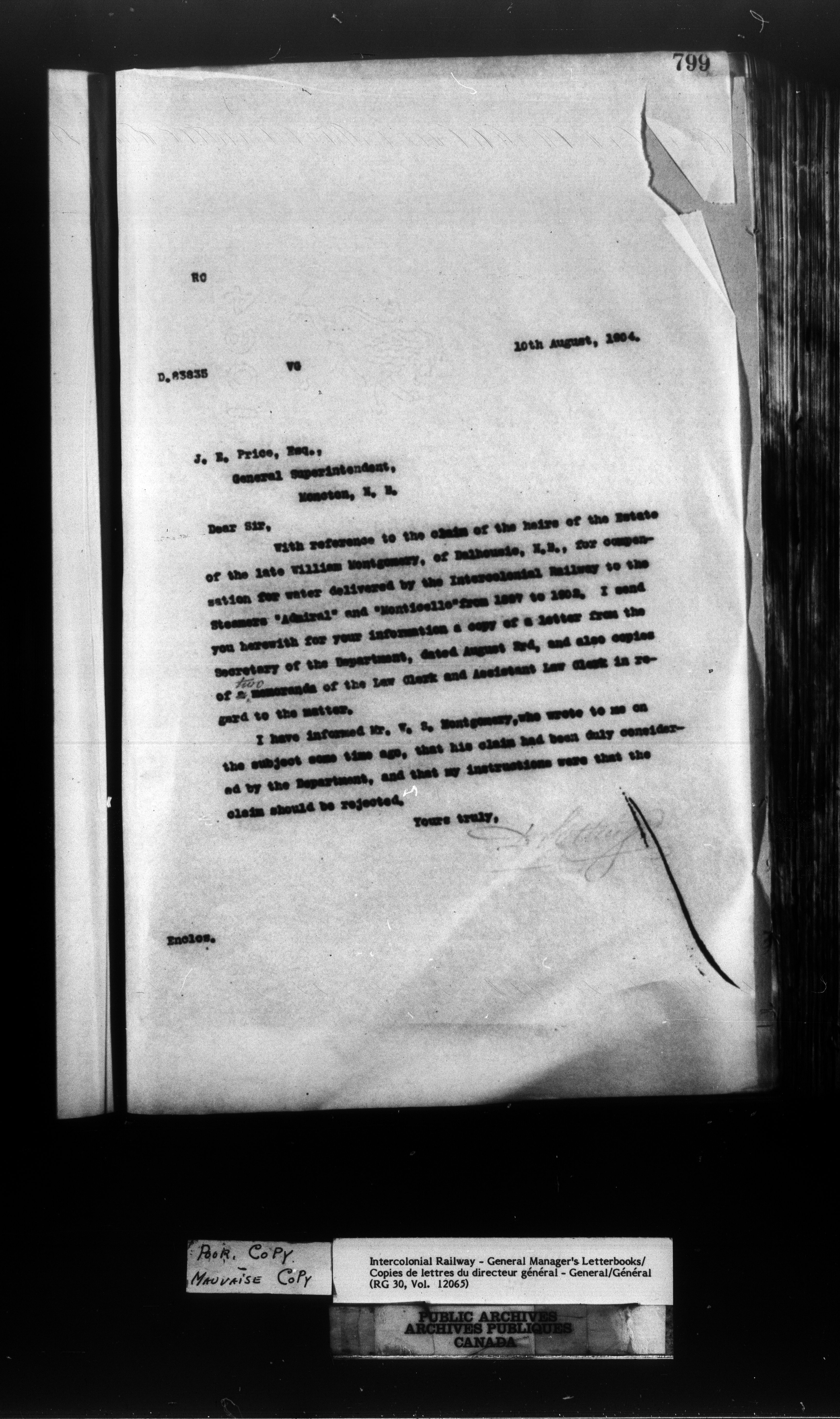 Canadian Government Railways : Office of the General Manager, Outward correspondence - 11454