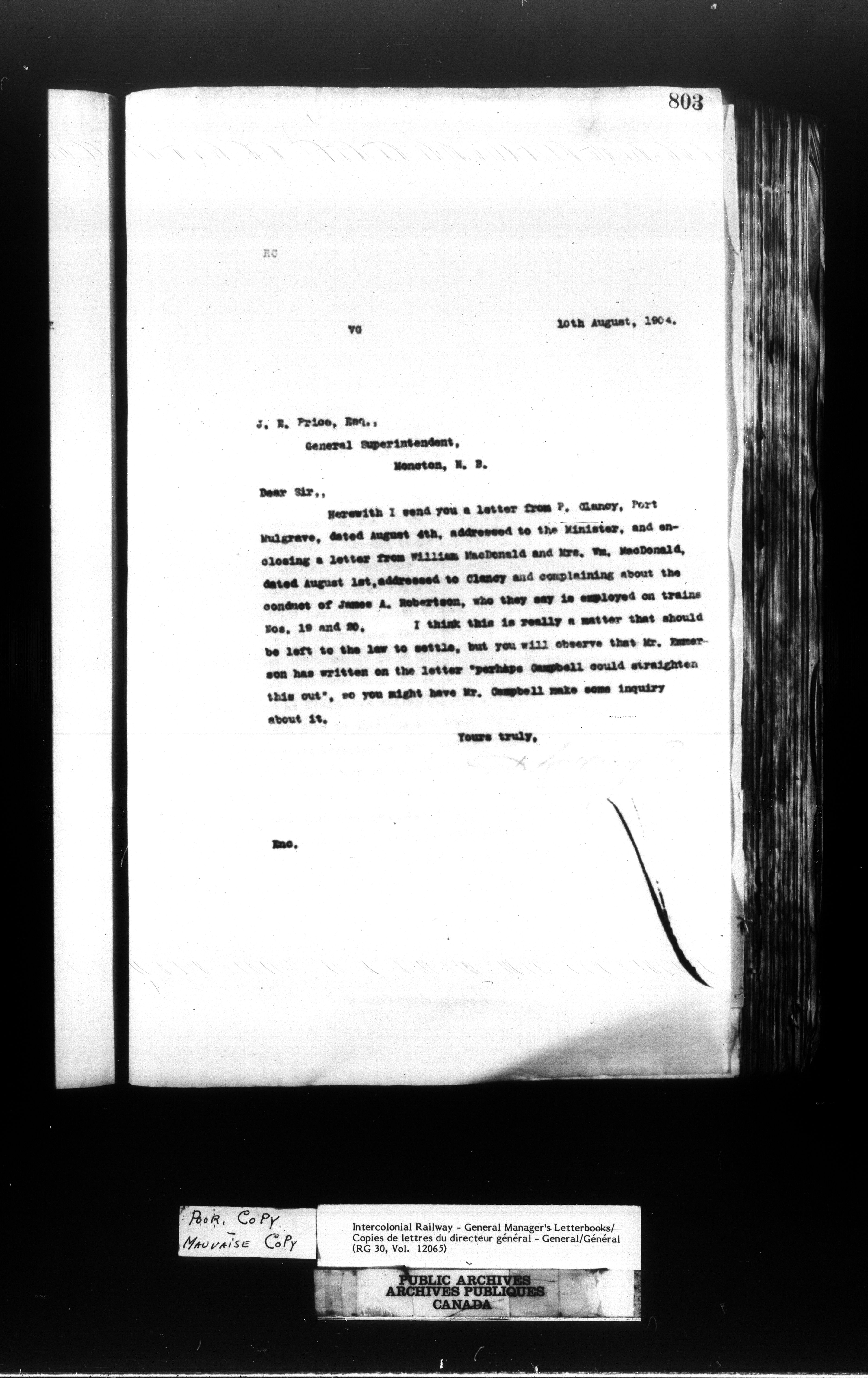 Canadian Government Railways : Office of the General Manager, Outward correspondence - 11454