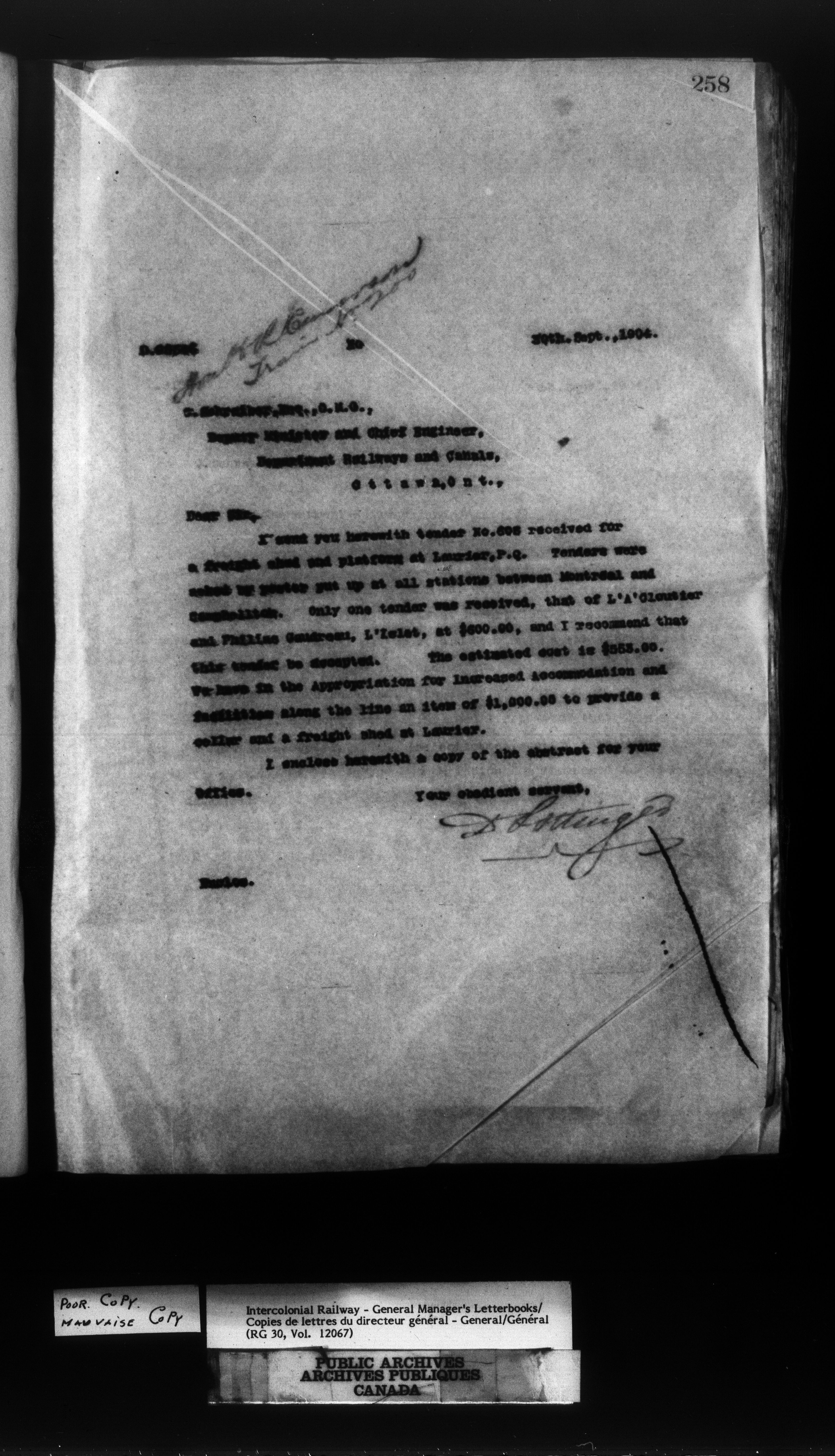 Canadian Government Railways : Office of the General Manager, Outward correspondence - 11455
