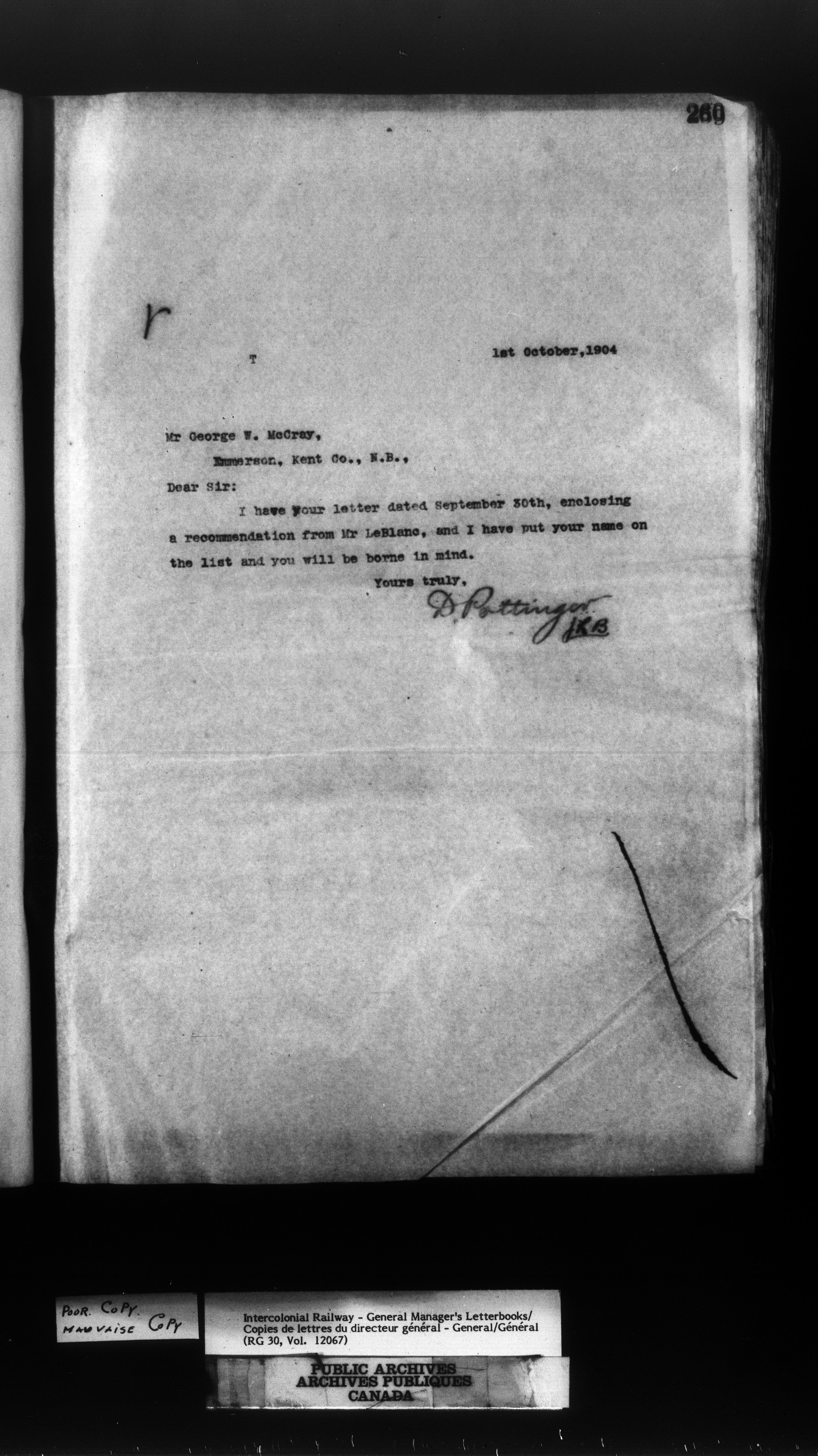 Canadian Government Railways : Office of the General Manager, Outward correspondence - 11455