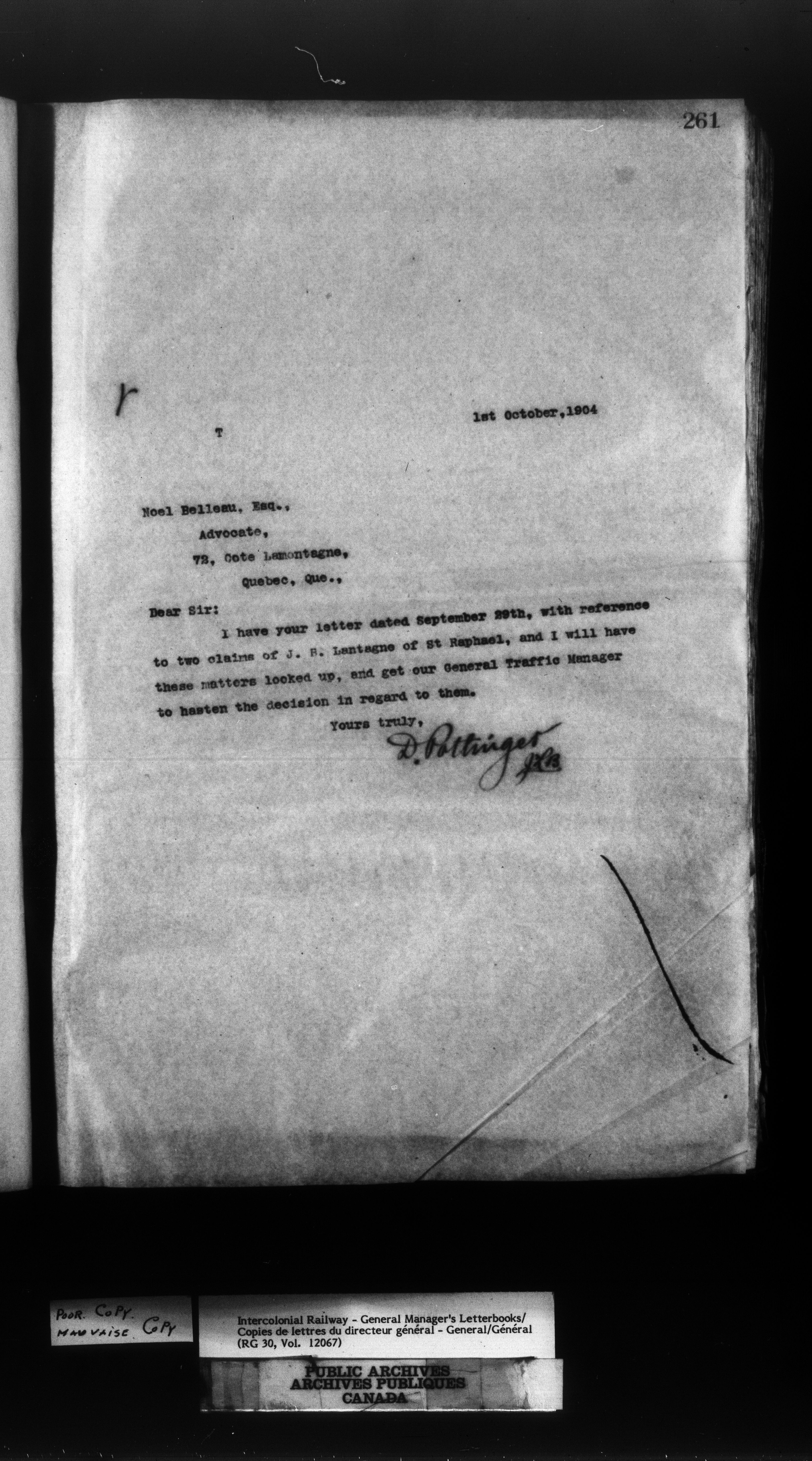 Canadian Government Railways : Office of the General Manager, Outward correspondence - 11455