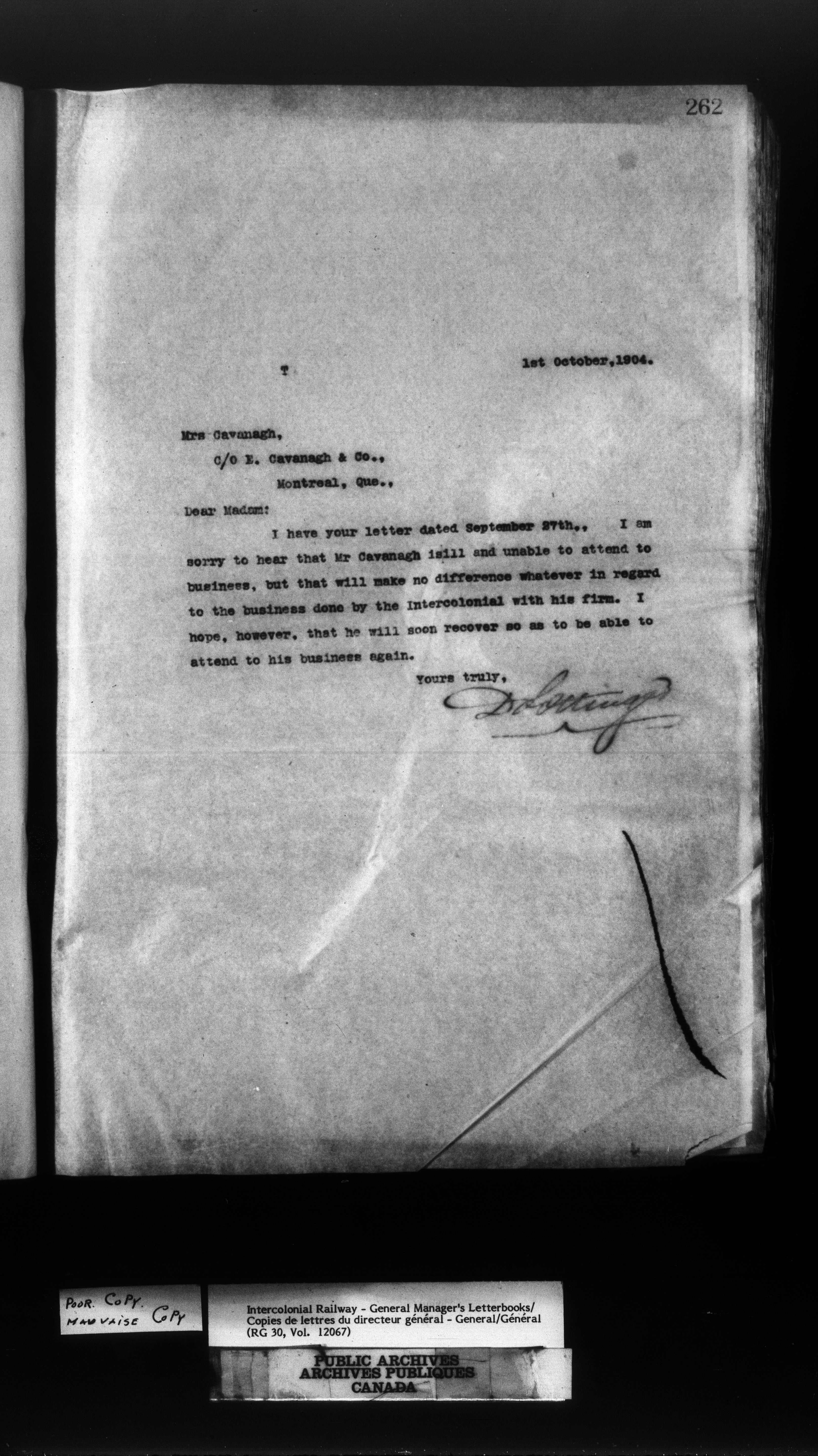 Canadian Government Railways : Office of the General Manager, Outward correspondence - 11455