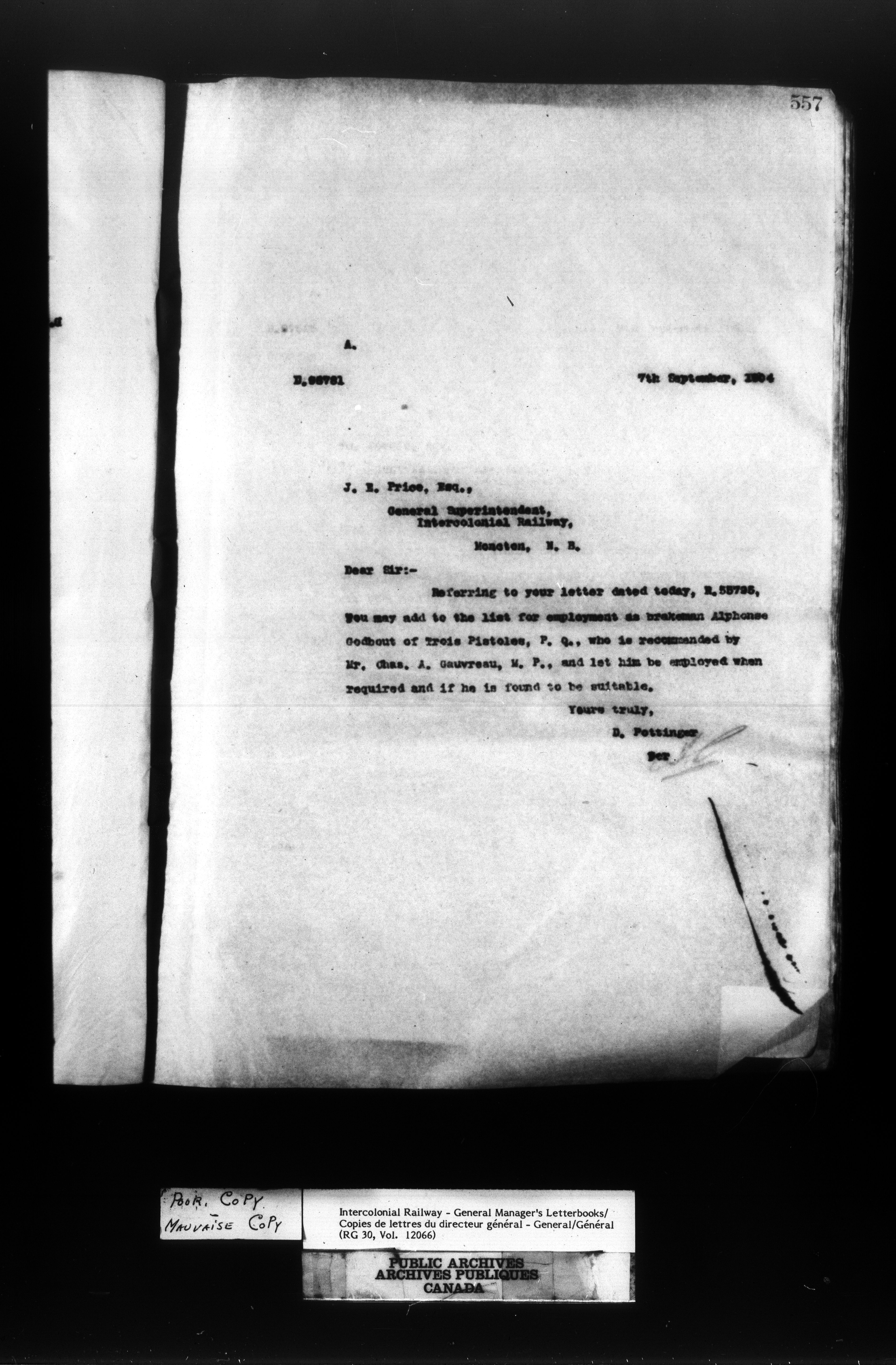 Canadian Government Railways : Office of the General Manager, Outward correspondence - 11455